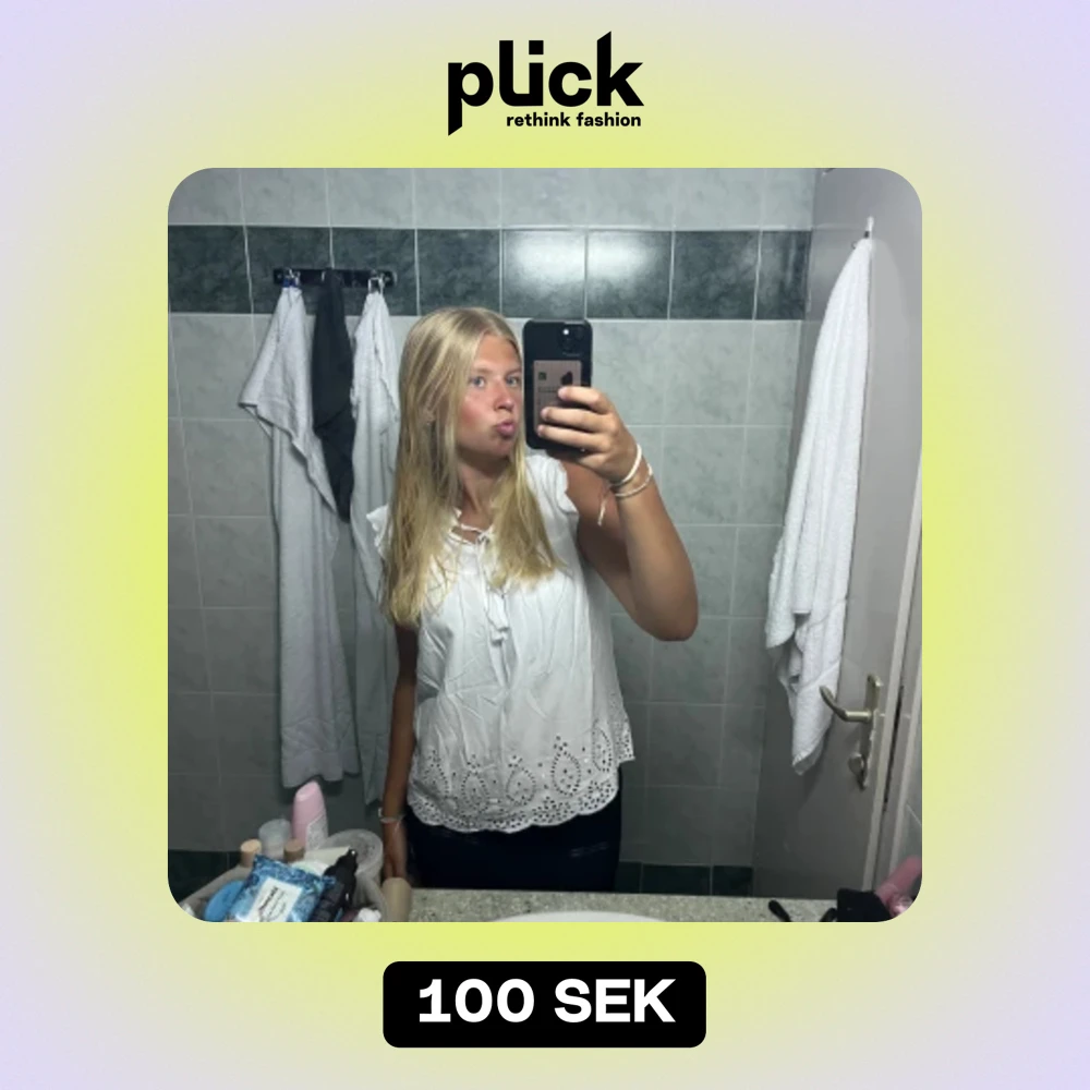 Vit blus från zalando, står inte storlek men passar S/M. Säljer pga att jag bara har använt den ca 2 gånger (finns en liten söm som har gått upp därav priset) Priset går även att diskutera!!