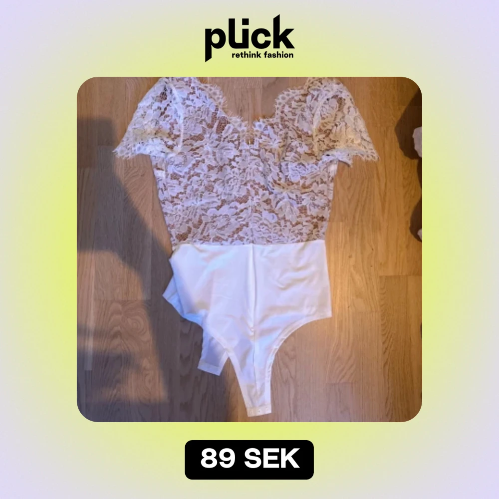 En vit kottarnas body med spets, det är ett hudfärgat undertyg så man ser inte igenom, aldrig använd
