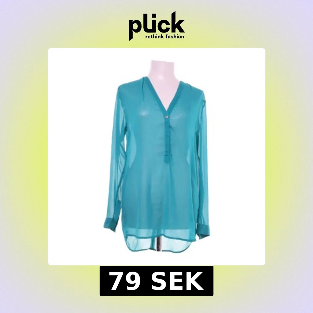 En flowy transparent blus som passar S och M, i en klar fin turkos färg. Passar både på fin middag och som extra fin beach cover-up.