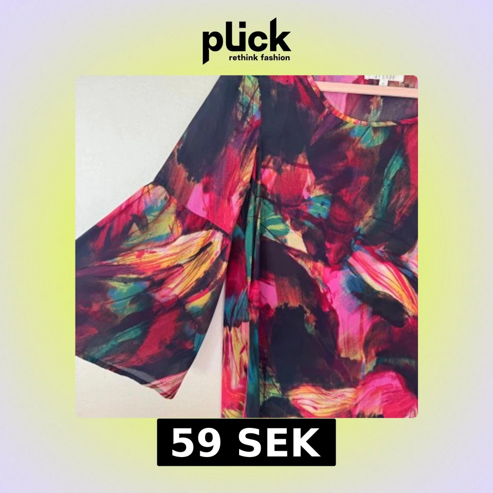 Säljer en supercool blus från Spense i storlek S med färgstarkt abstrakt mönster i rött, rosa, gult, grönt och blått. Blusen har vida, trekvartsärmar och är tillverkad i ett lätt, skirt material som ger en festlig känsla.