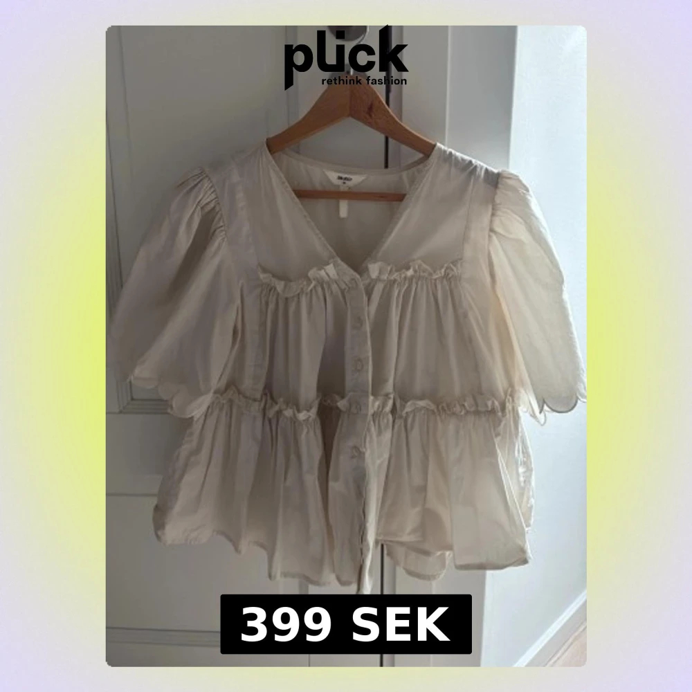 Vit volangblus med puffärm från Object