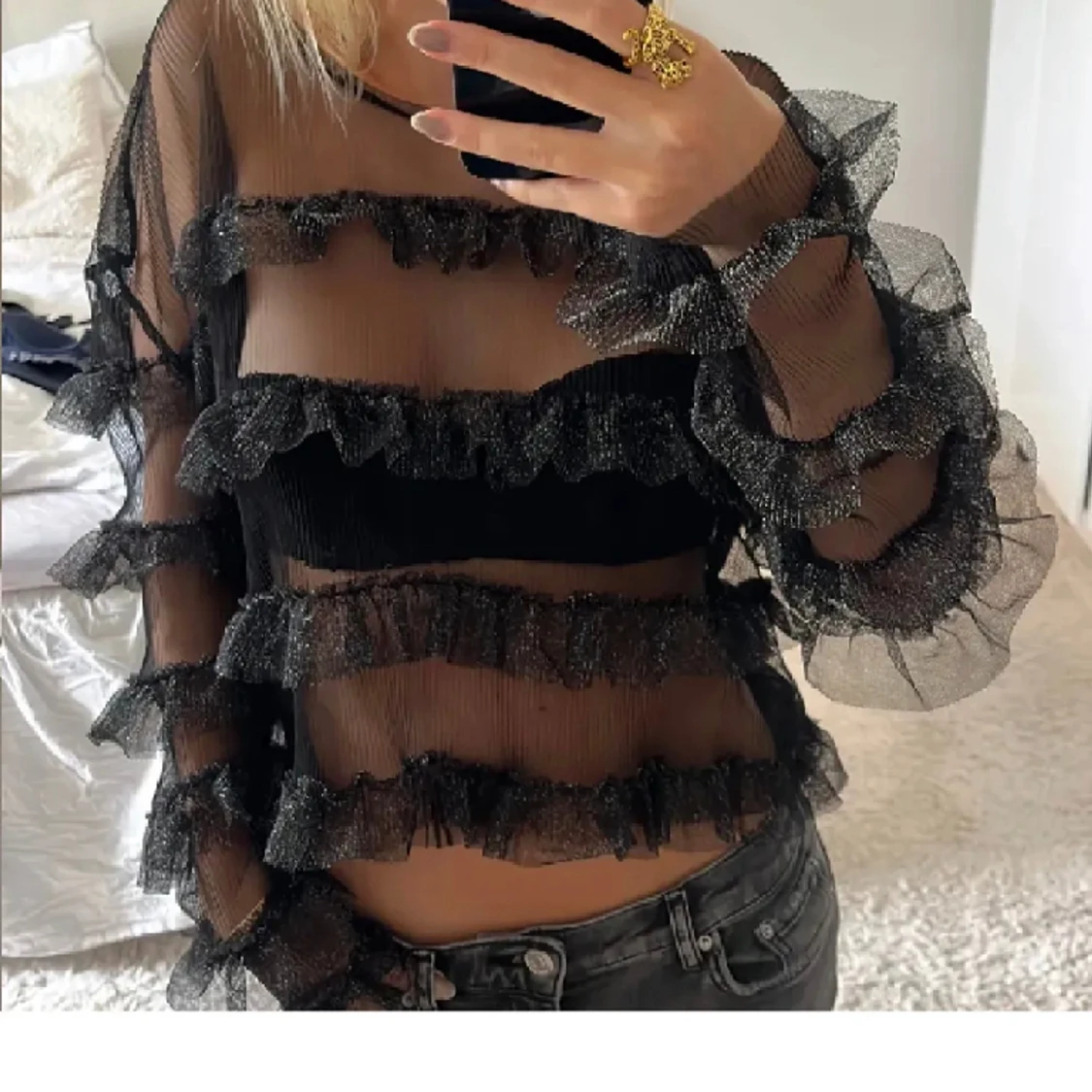 Säljer min svarta glittriga blus från Zara💞Jätte fin och i ett mycket bra skick!! Säljer då den inte kommer till användning för mig så ofta💞