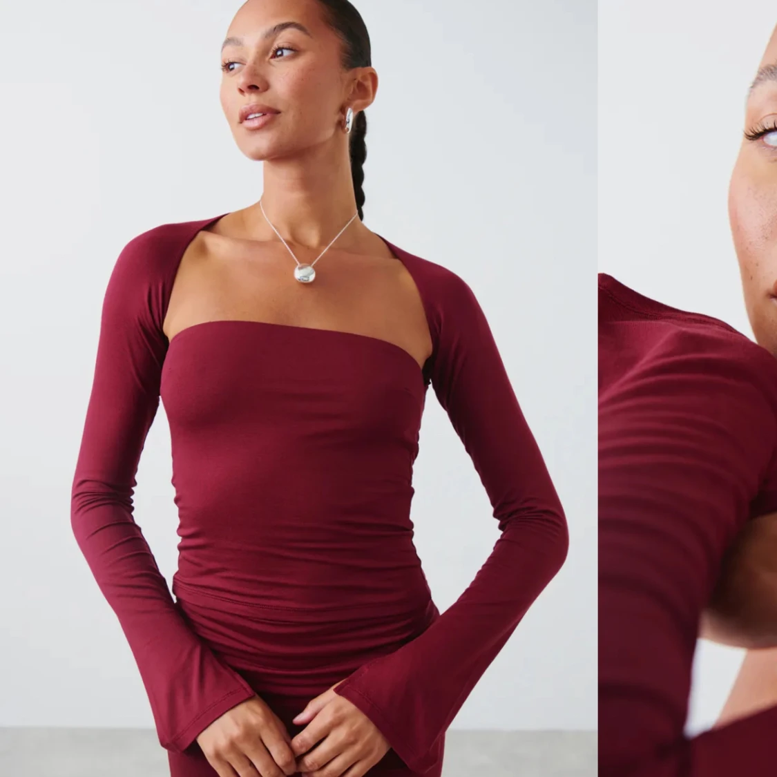 Skitsnygg vinröd topp från Gina💞 använd 1 gång, men säljer då jag ej tycker den satt bra på mig💓
