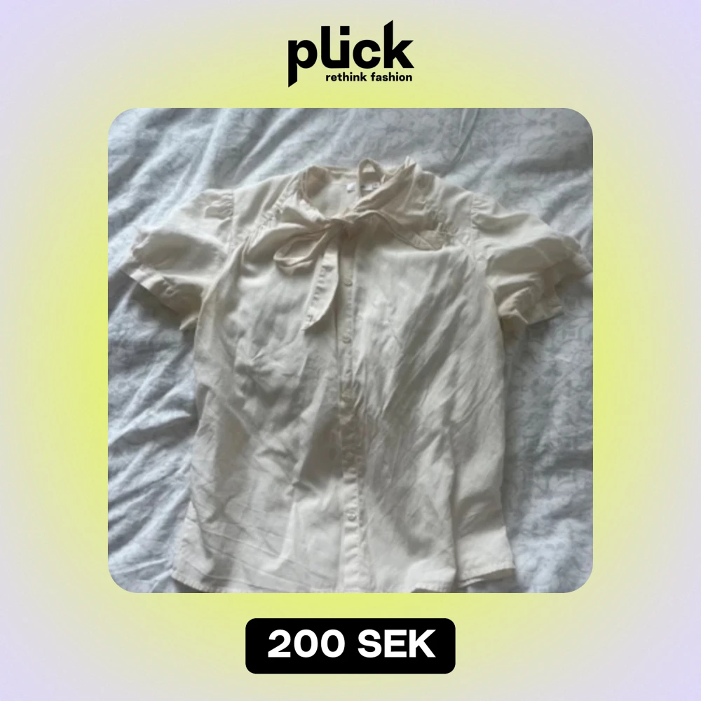 Jättesöt crémevit blus från Filippa K med knytning vid kragen och knappar vid ärmarna! ❣️