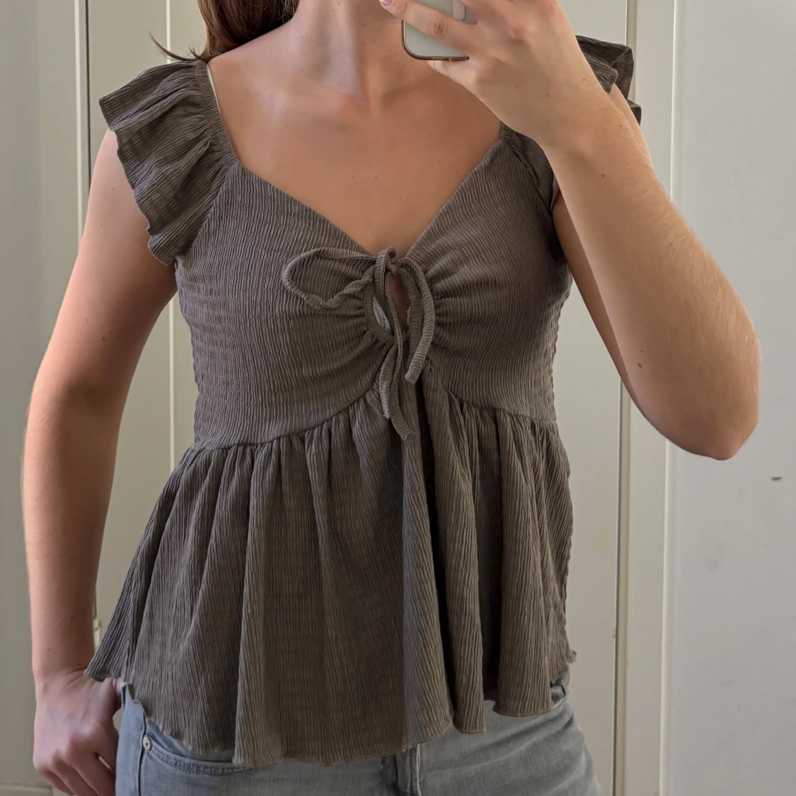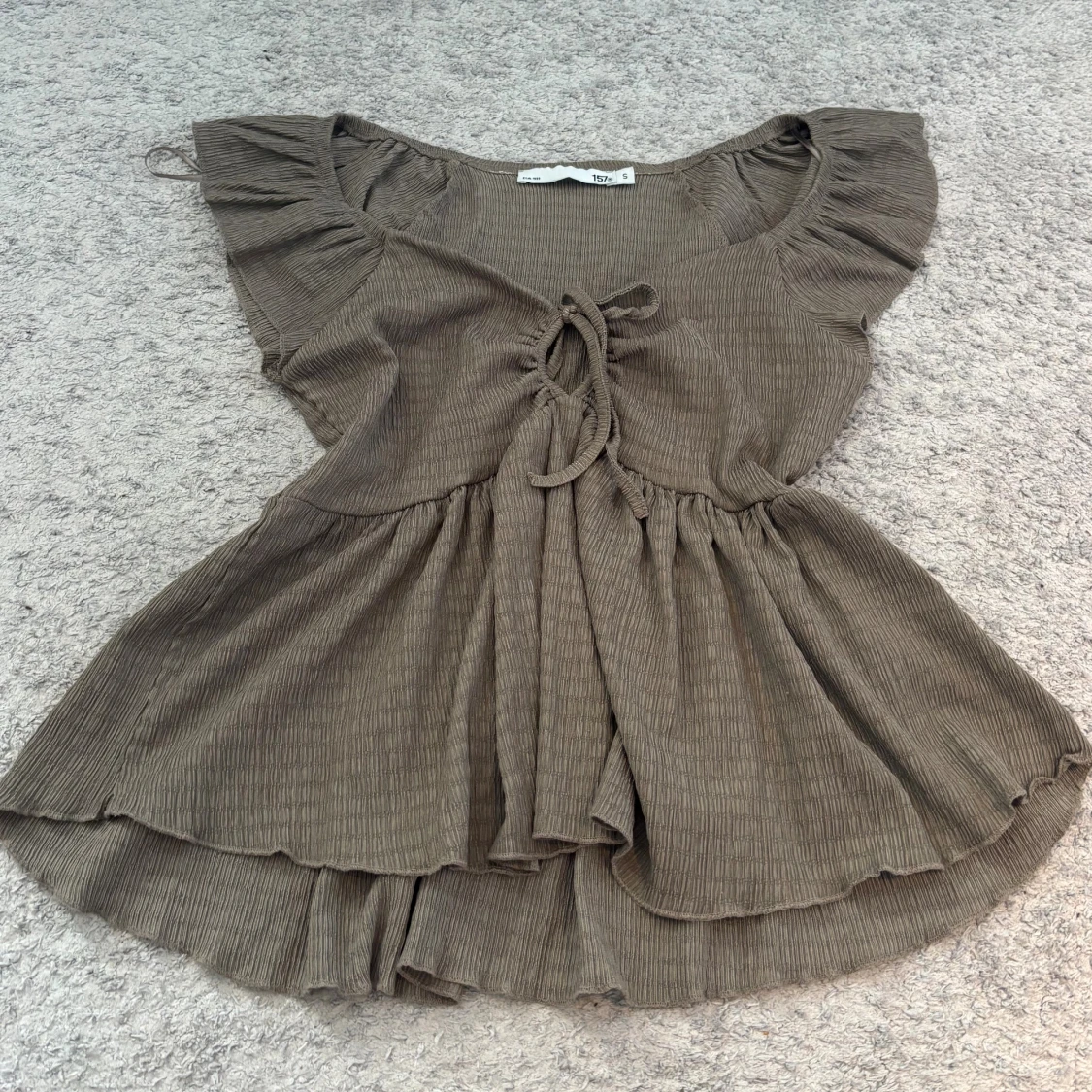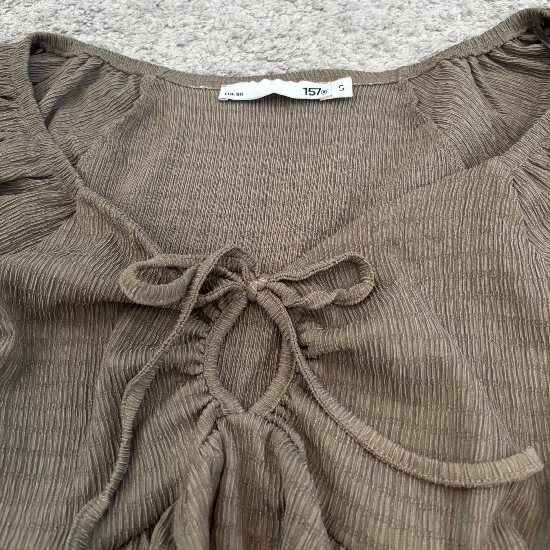 En fin blus från lager 157 i en brun färg med en rosett i fram och som sitter tajtare under bysten. Använd ett fåtal gånger och är i storlek S men passar för M också. Hör av dig vid frågor och priset går att diskuteras💕