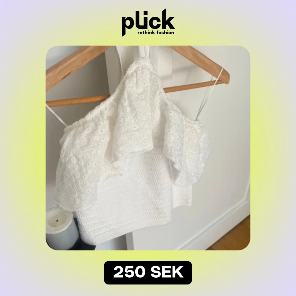En jättefin halter neck topp från Zara. Fin volang med lite broderier och virkad där nere. Ny skick och går ej att köpa längre
