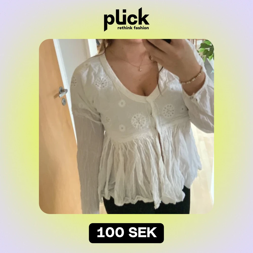 En vit blus med öppning på magen. Väldigt bra skick och den har fina paljetter runt axlarna.