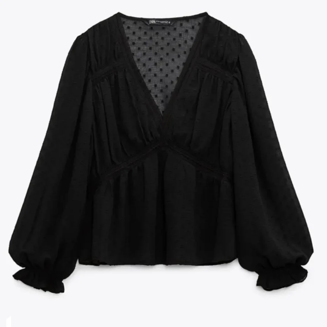 Säljer min fina svarta blus från zara som har blivit använd fåtal gånger! Den finns inte att köpa längre på zaras hemsida💞