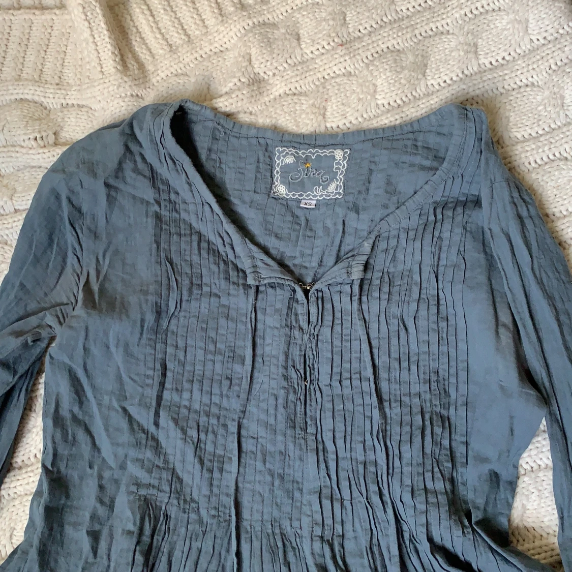 Blågrå blus ifrån fira med fina detaljer. Nypris: 650kr (FRAKT TILLKOMMER)