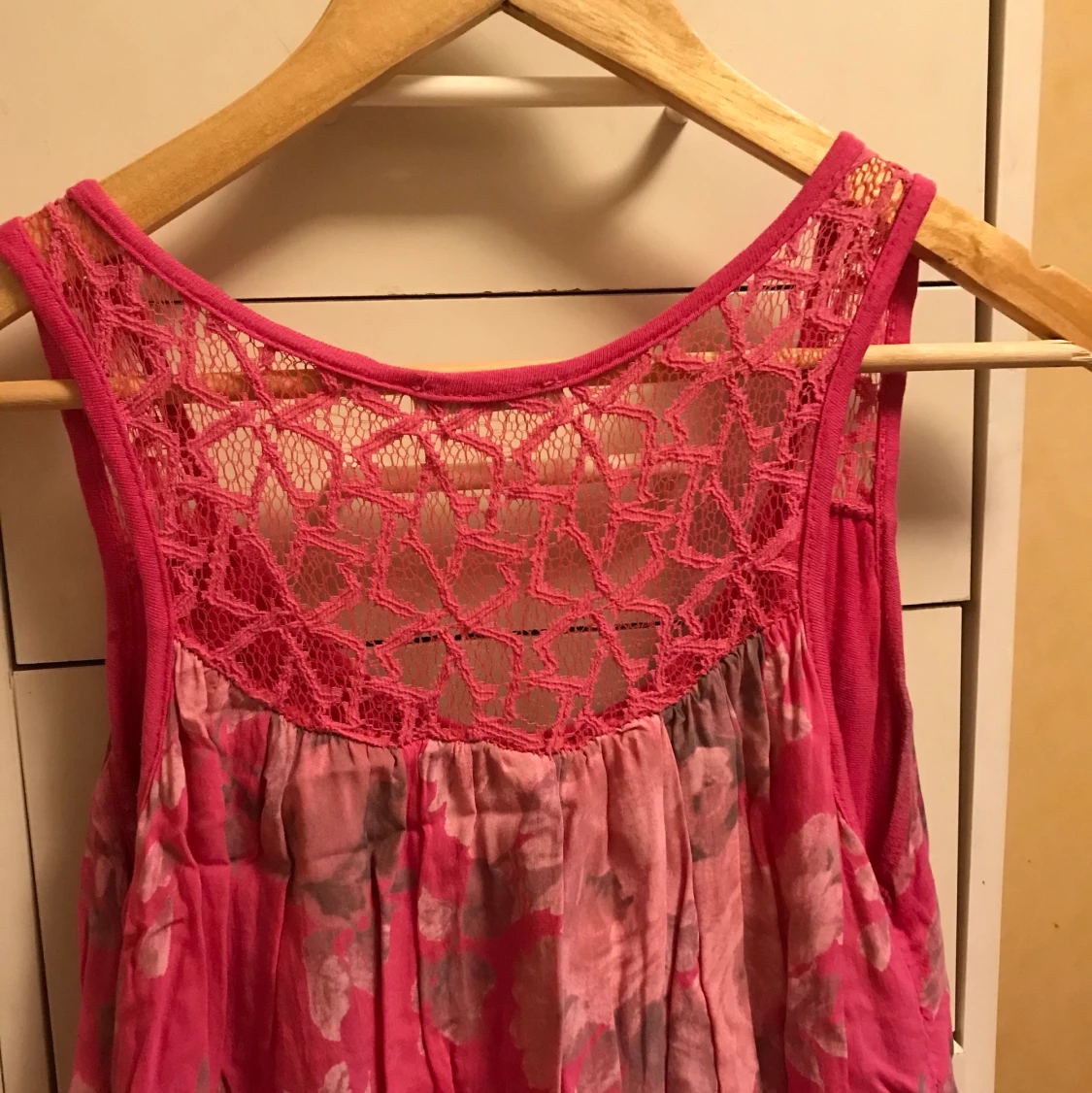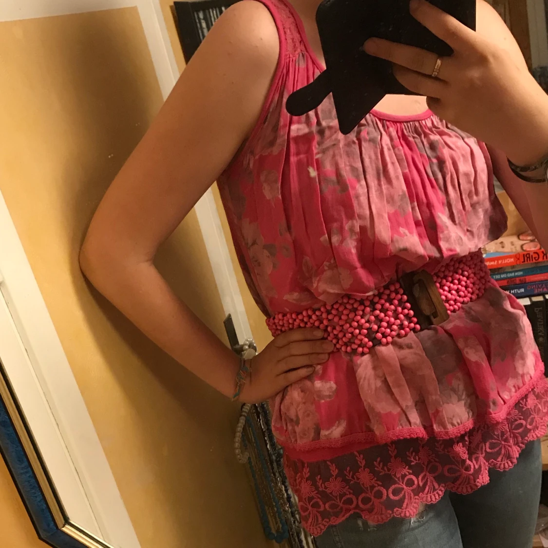 Blommig rosa jättesöt blus med två lager och spetskant💕 använd en gång, (frakt ingår ej)
