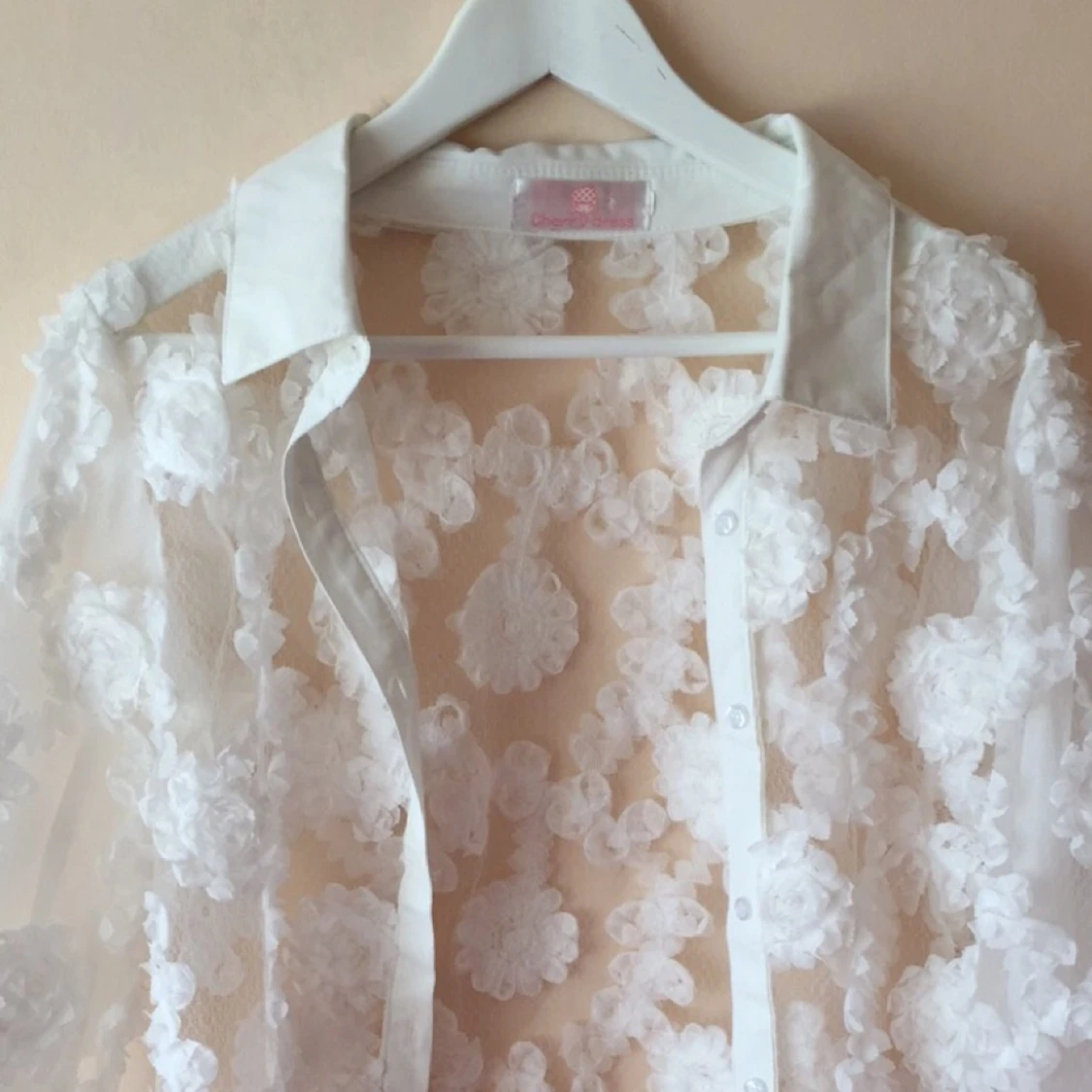 En blommig transparent blus med knappar. Aldrig anvĂ€nd bara provat! đ