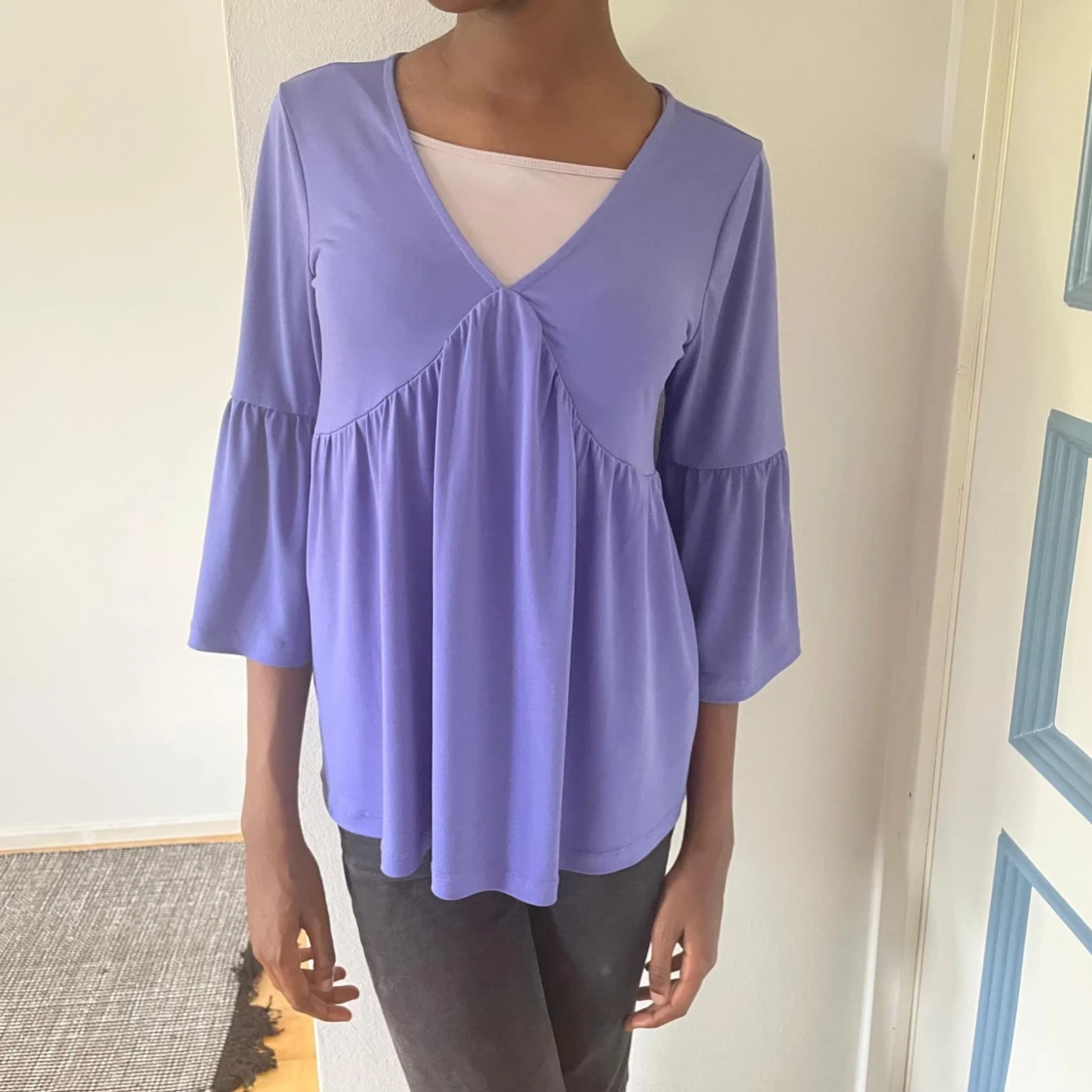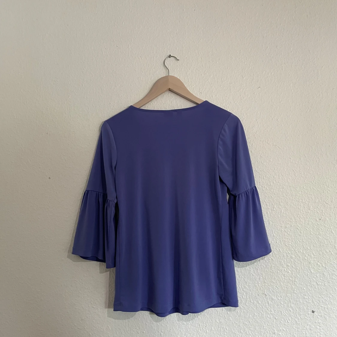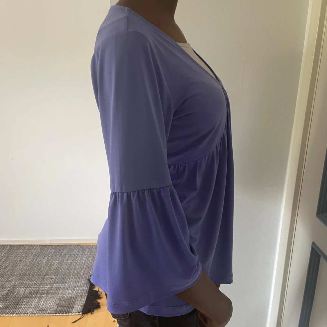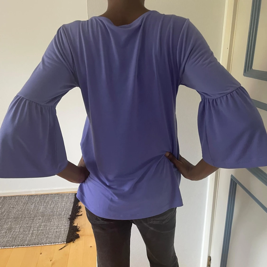 Purple blouse with trumpet arms