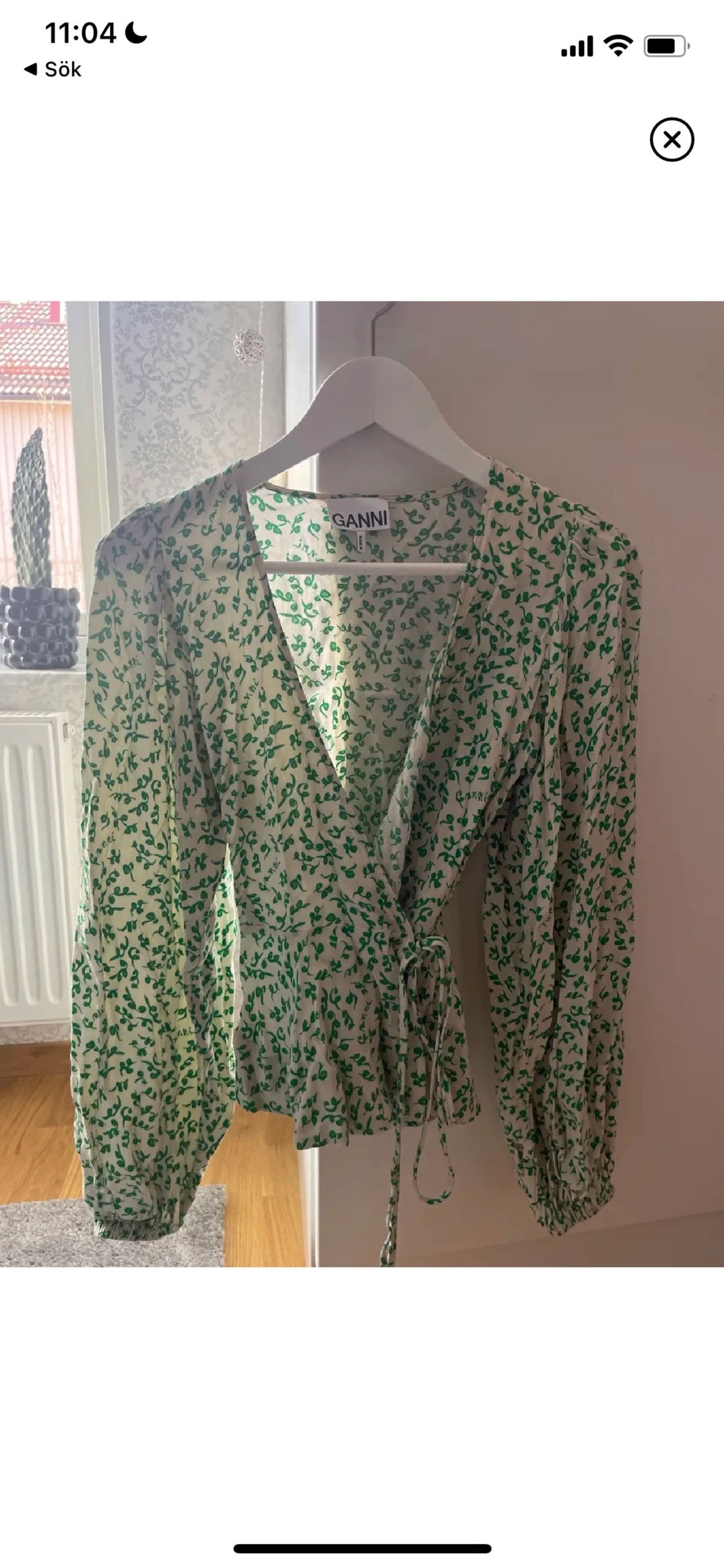 Ganni blus som inte säljs längre 💚 Storlek 36, inköpt på NK för ca 1595kr. Sparsamt använd, enbart fåtal gånger💚