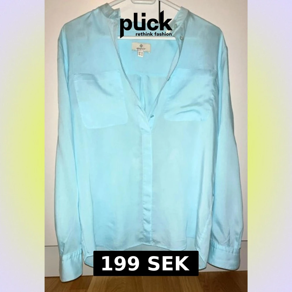 Snygg ljusblå skjorta från Gant i storlek 36. Skjortan har lång ärm, två bröstfickor och klassisk krage utan knappar. Tillverkad i ett mjukt och svalt material som ger en skön känsla. Perfekt för dig som gillar stilrena och enkla plagg.