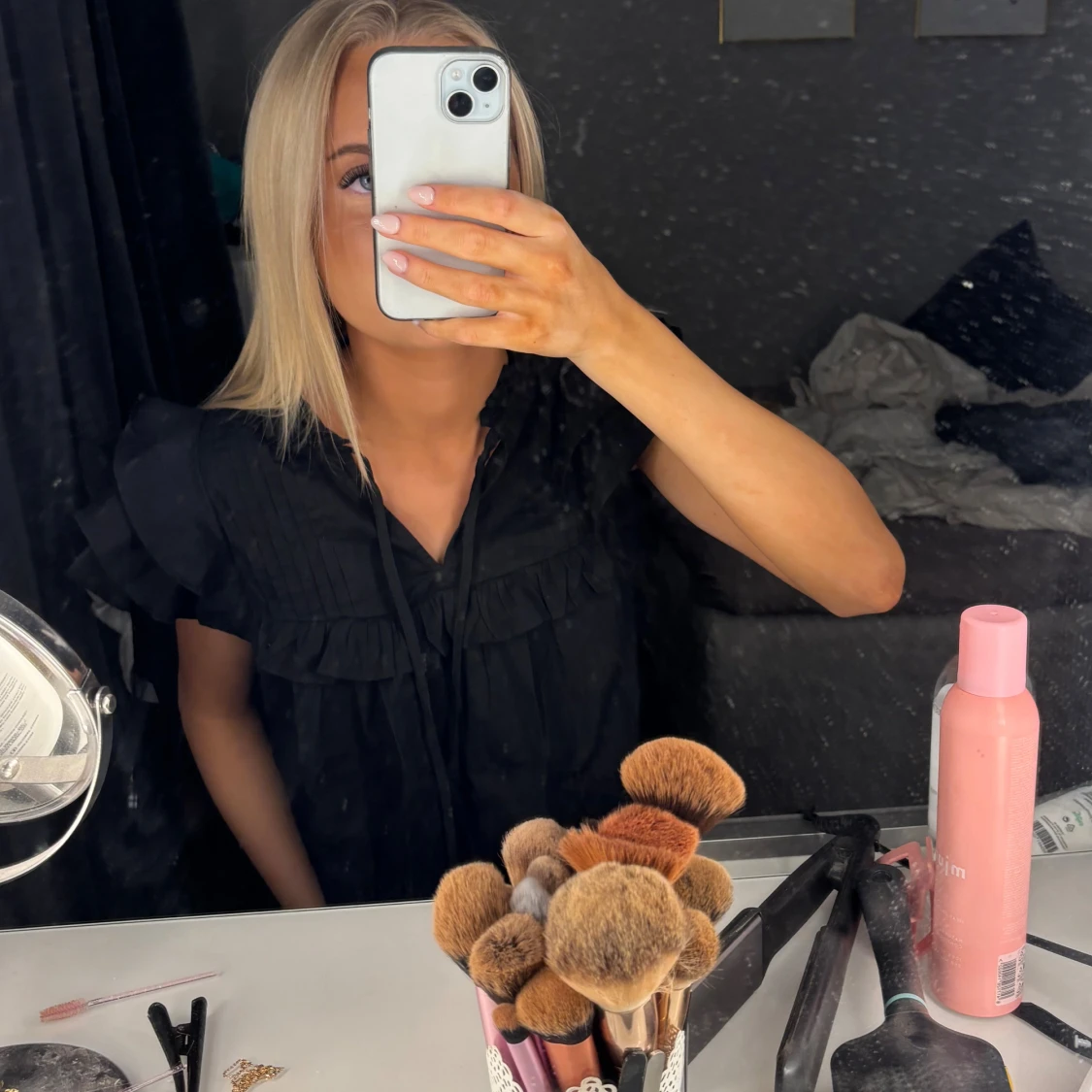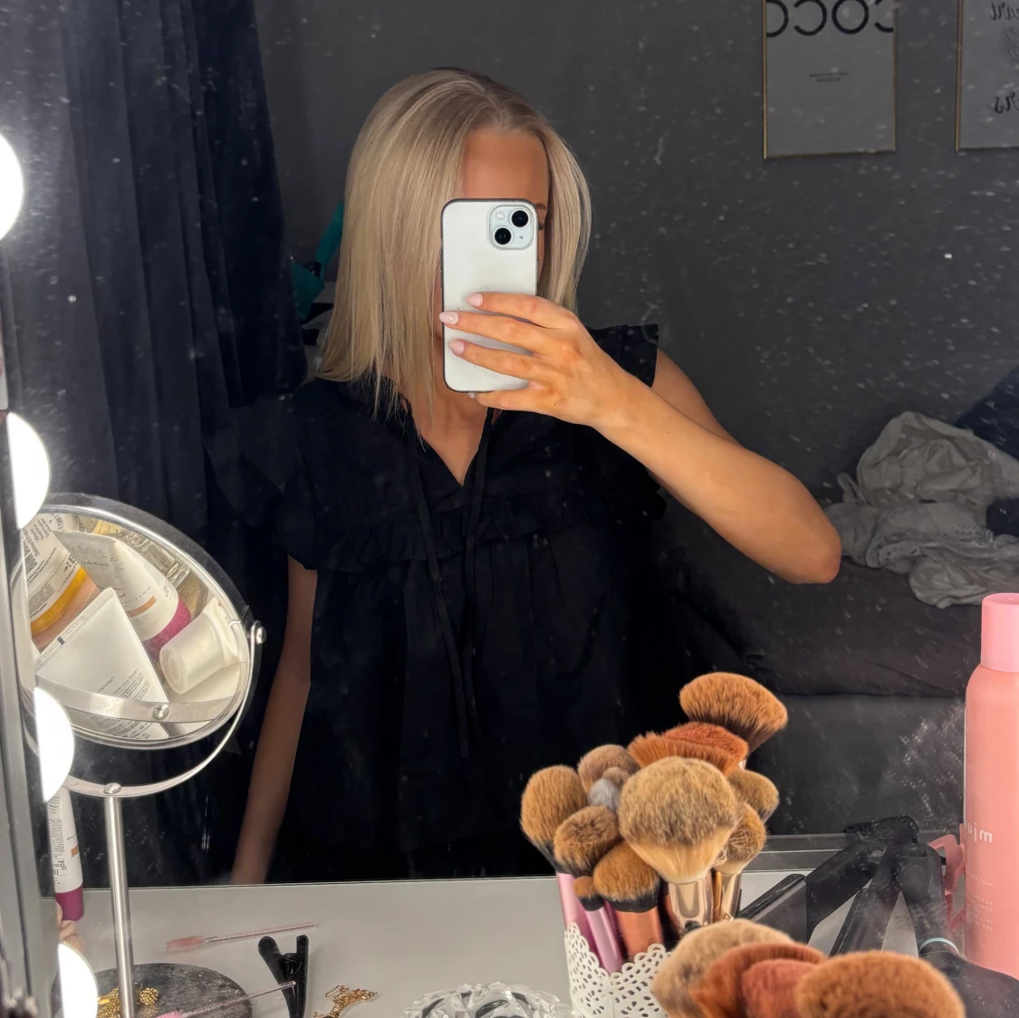 Säljer en söt svart blus med volangdetaljer från GinaTricot. Fint skick 🤍