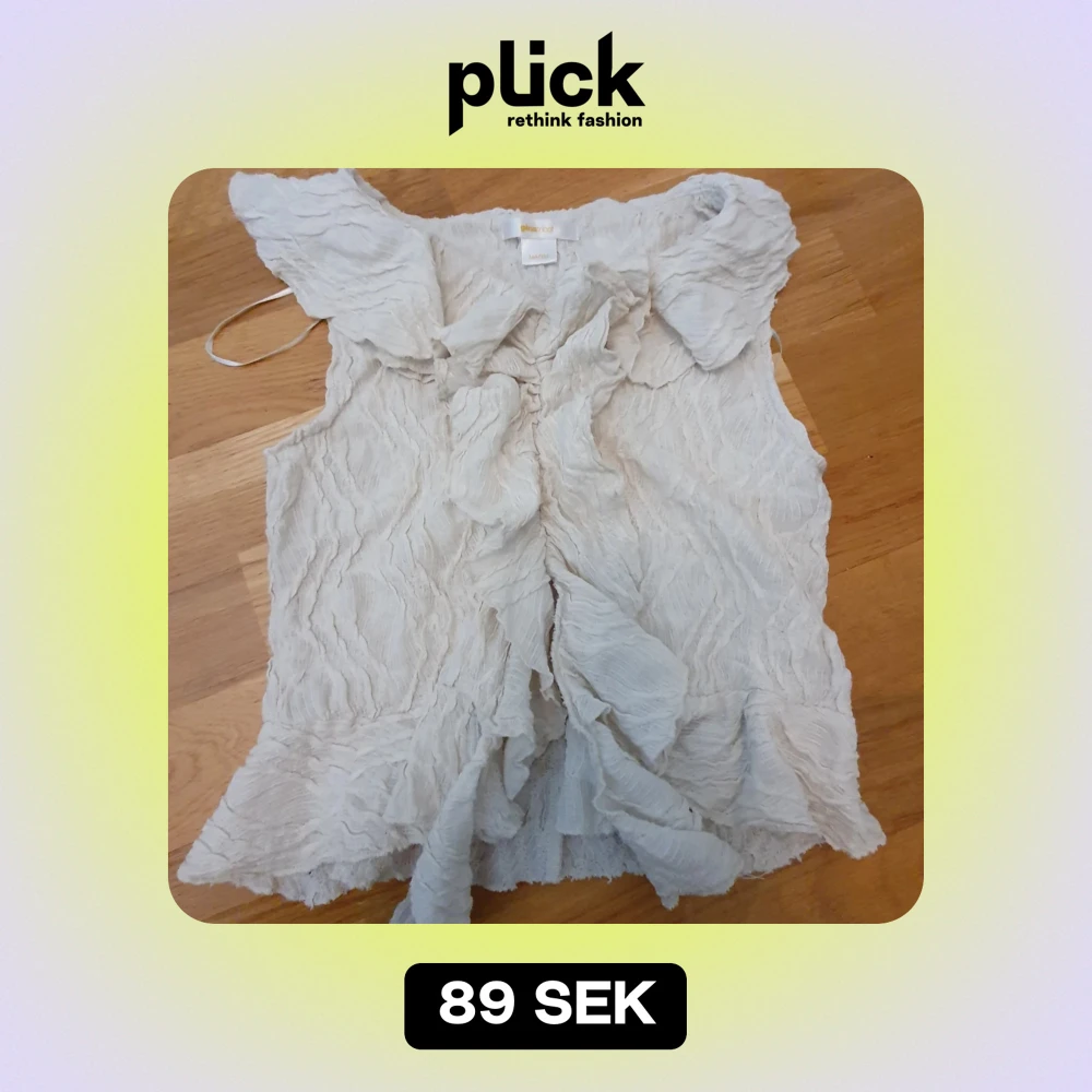 Säljer en snygg trendig sandvit/beigevit volang blus från ginatricot! Perfekt till nyår,jul och andra fest firanden, även i vardagen. Säljer för att:har aldrig kommit till användning, nyskick!