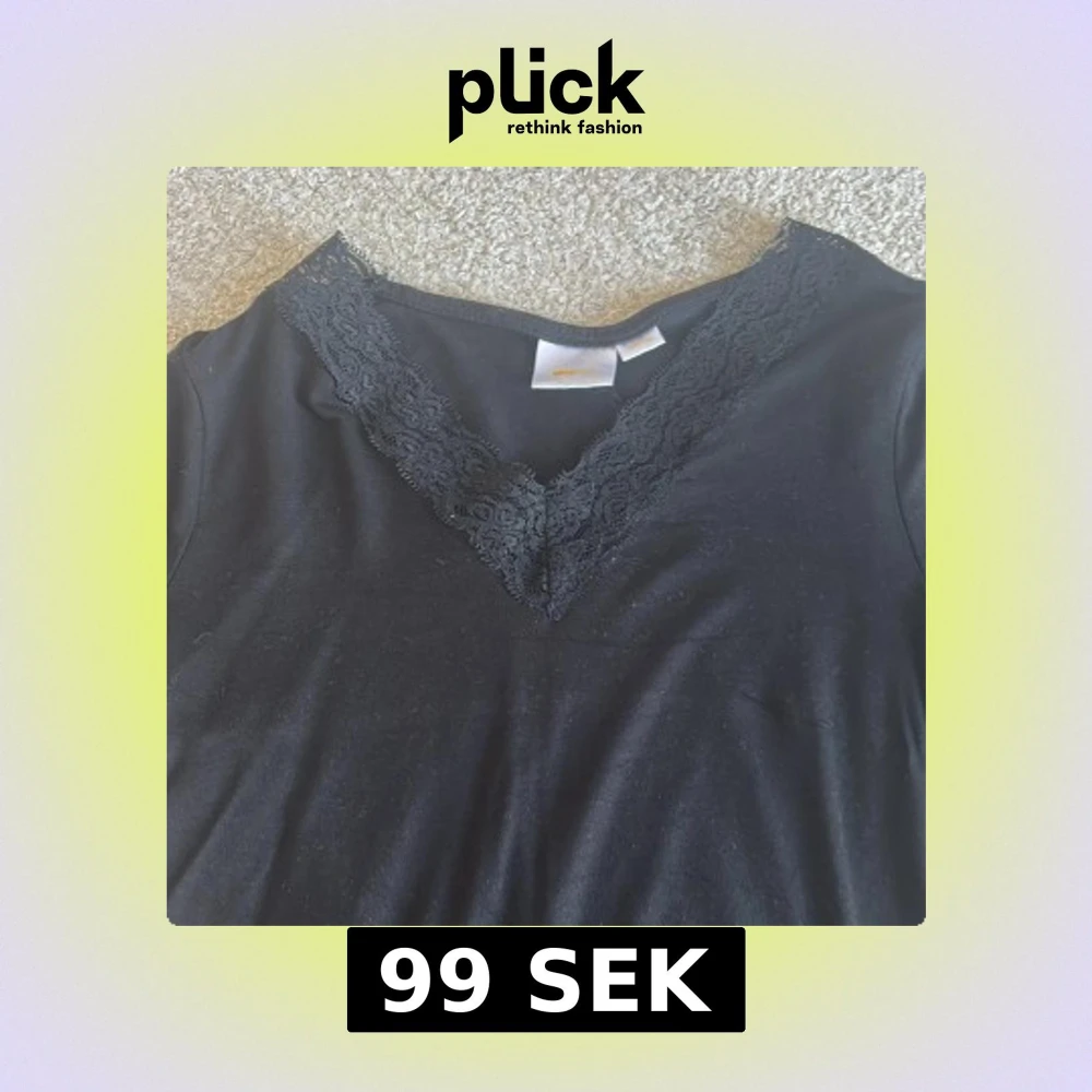 Svart långärmad topp från Gina Tricot med v-ringning och snygg spetsdetalj längs halsringningen. Toppens material är mjukt och stretchigt, perfekt för en stilren look. Passformen är normal och toppen är enkel att matcha med olika outfits.skriv innan ni köper pris kan diskuteras