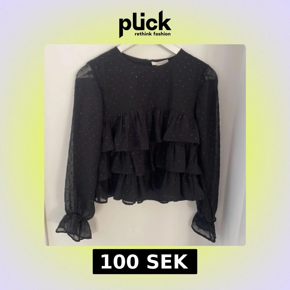 Skir blus från Gina Tricot. Volanger. Sydda glitter dots. Vid ärm. Snodd i ärmslut.