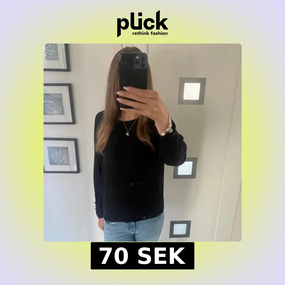 Supersnygg svart Gina Tricot blus som jag nu säljer eftersom den inte kommer till andvändning längre, men har varit en av mina favoritblusar! Det är knappar längst ut på handlederna. Kommer även en extra knapp som sitter på etiketten! Kan absolut sänka priset!💕
