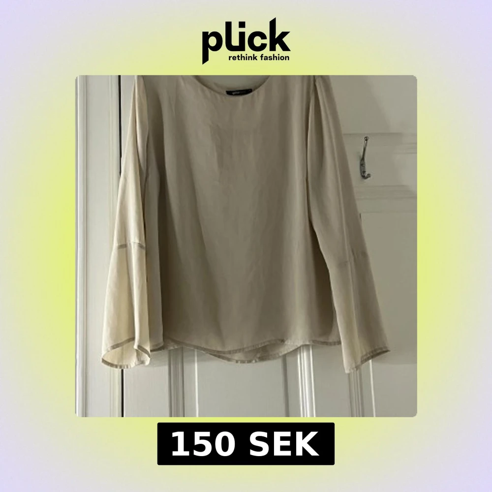 Säljer en beige blus från Gina Tricot. Blusen har långa ärmar och en rund halsringning, perfekt för en elegant look. Materialet är mjukt och bekvämt, vilket gör den idealisk för både vardag och speciella tillfällen.