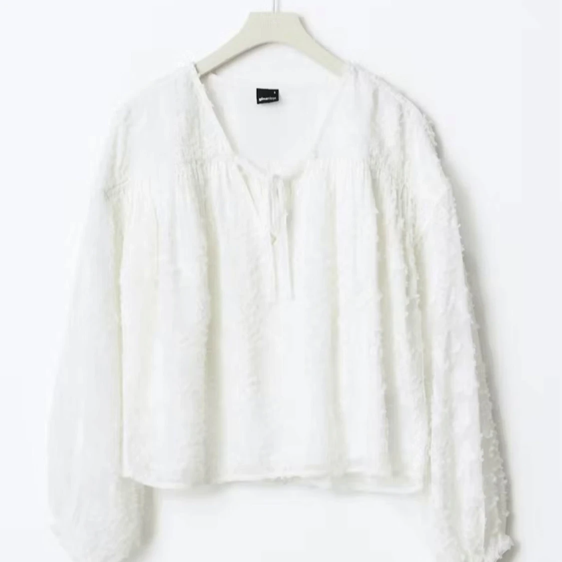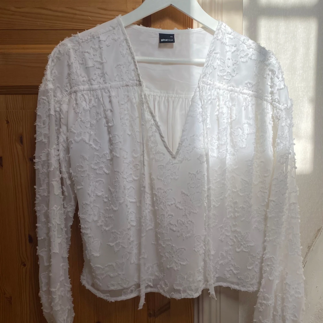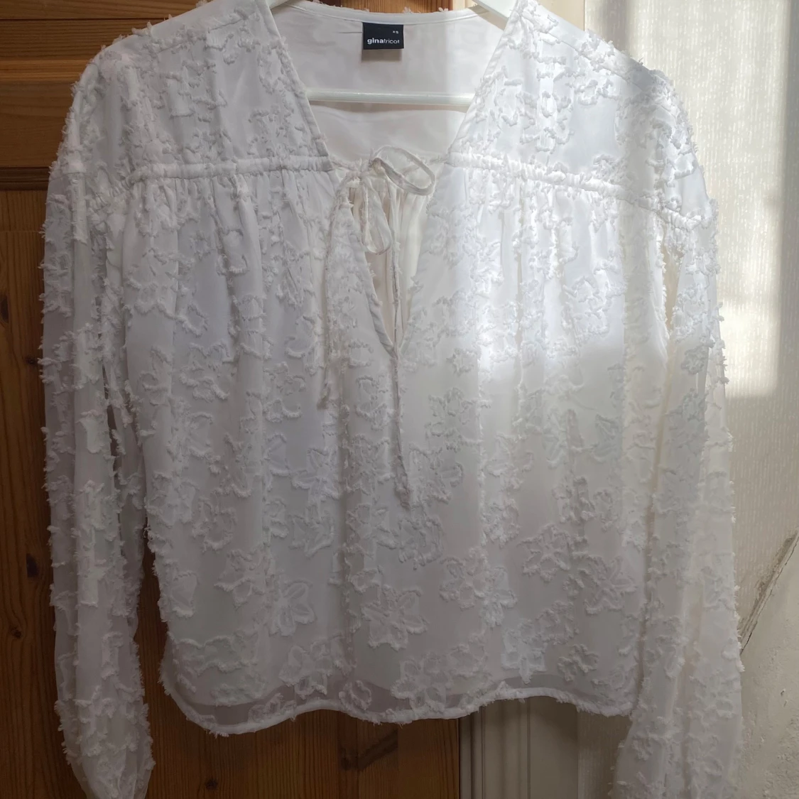 En jättefin blus från gina tricot, endast använd en gång❤️ Den har knytband vid urringningen. Nypris 459, jag säljer för 200kr🥰 Skriv vid frågor eller för fler bilder!