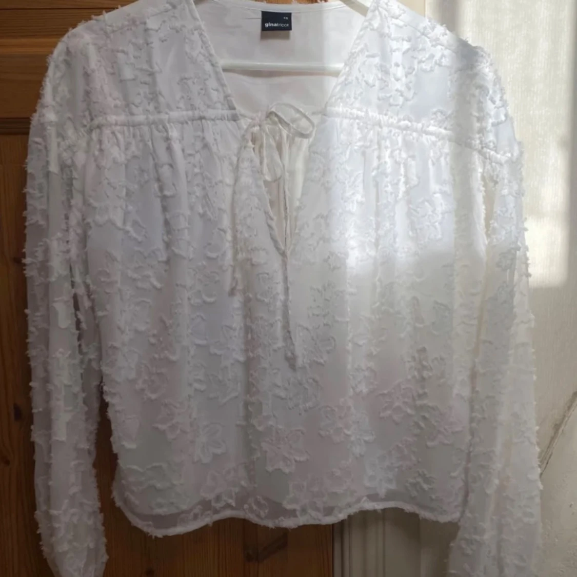 En jättefin blus från gina tricot, endast använd en gång❤️ Den har knytband vid urringningen. Nypris 459, jag säljer för 200kr🥰 Skriv vid frågor eller för fler bilder!