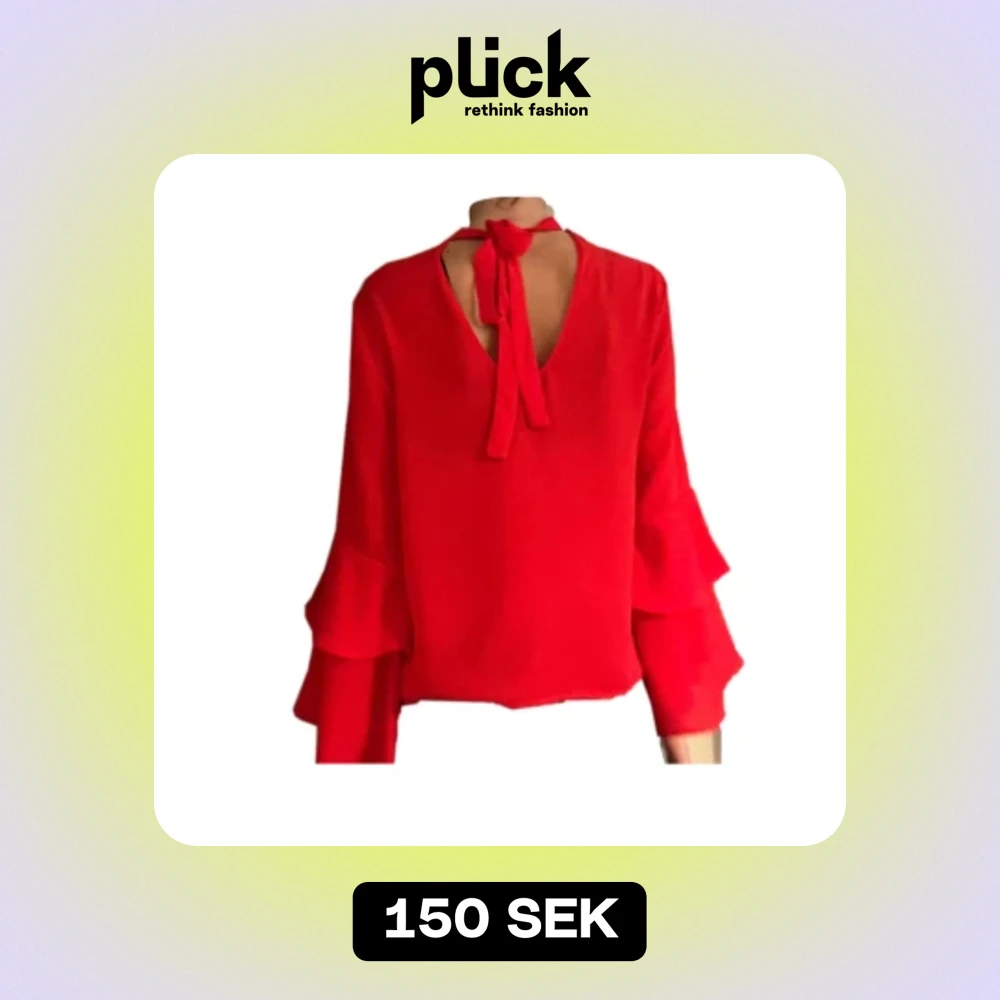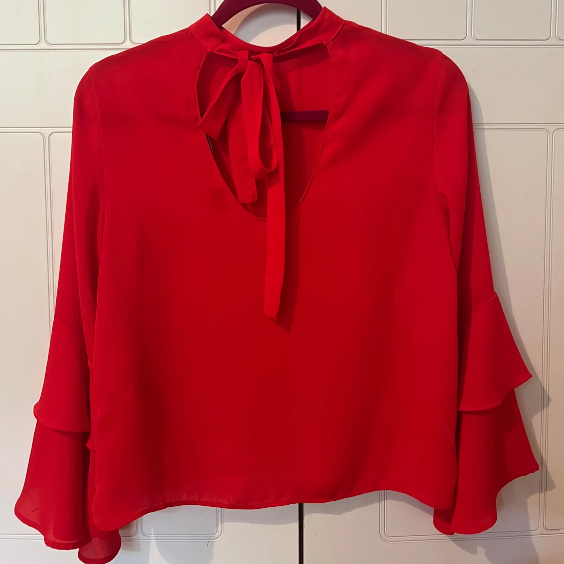 Röd Gina Tricot blus som man knyter där bak💕 Orginalpris: 400kr (slutsåld överallt). Mesh-material.