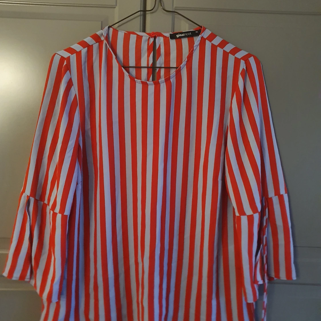 Randig blus från Gina tricot med utsvängda ärmar. Sparsamt använd