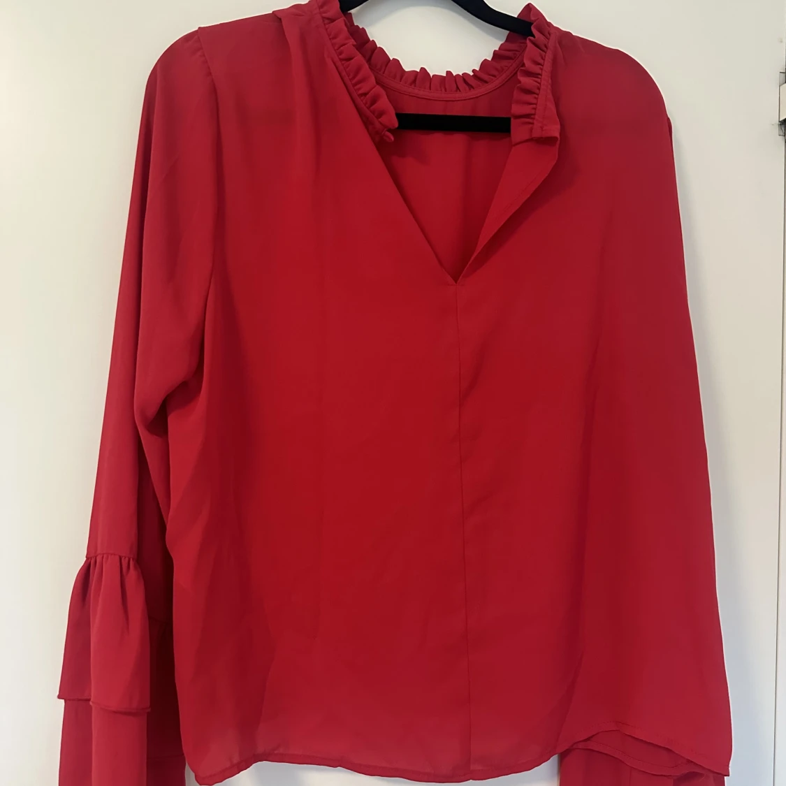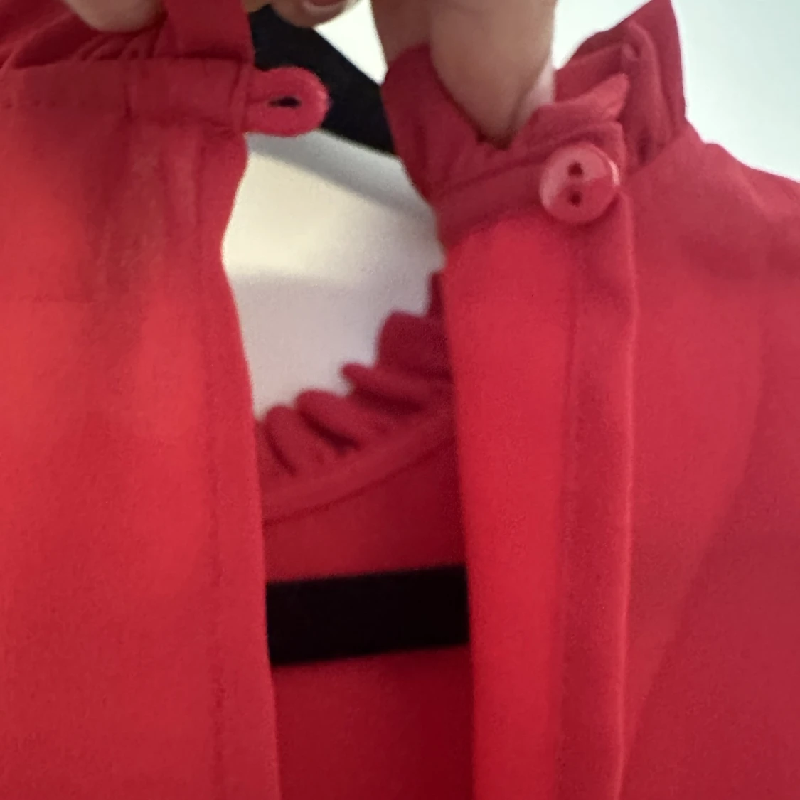 Super söt röd blus med knapp baktill. Srorlek 42 men funkar för 40 också!😁