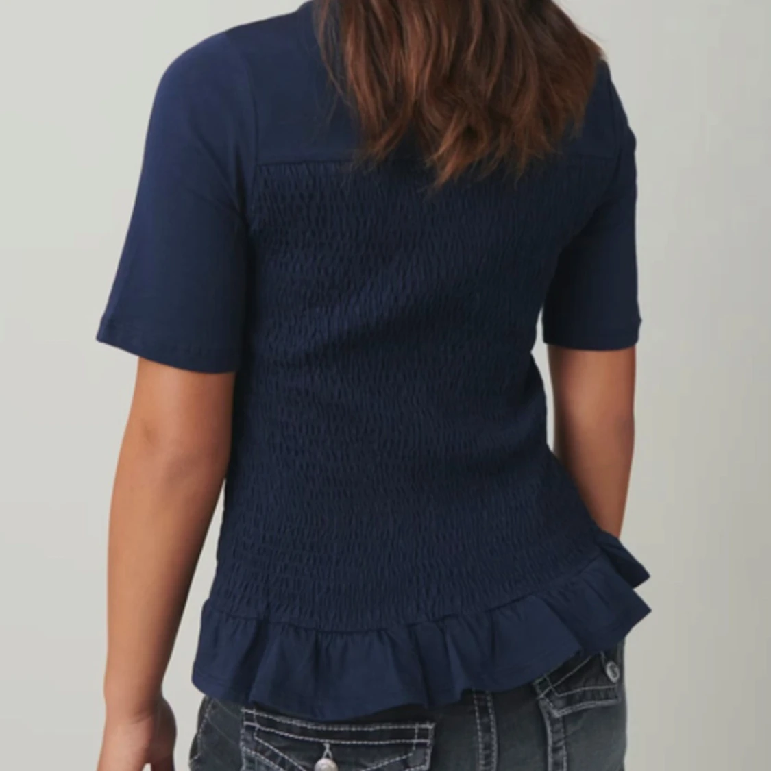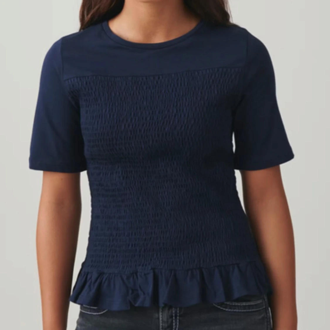 Mörkblå topp med volangdetalj