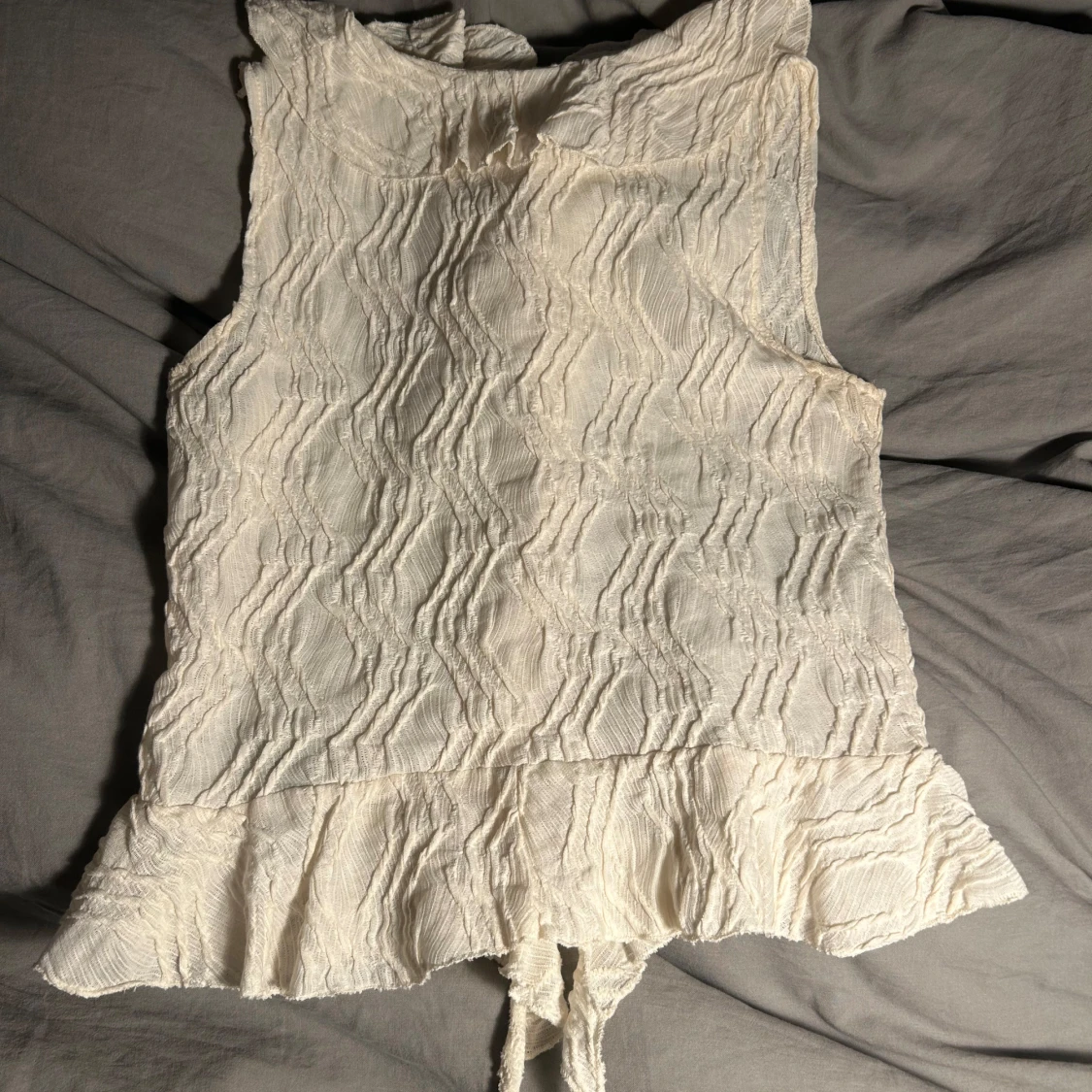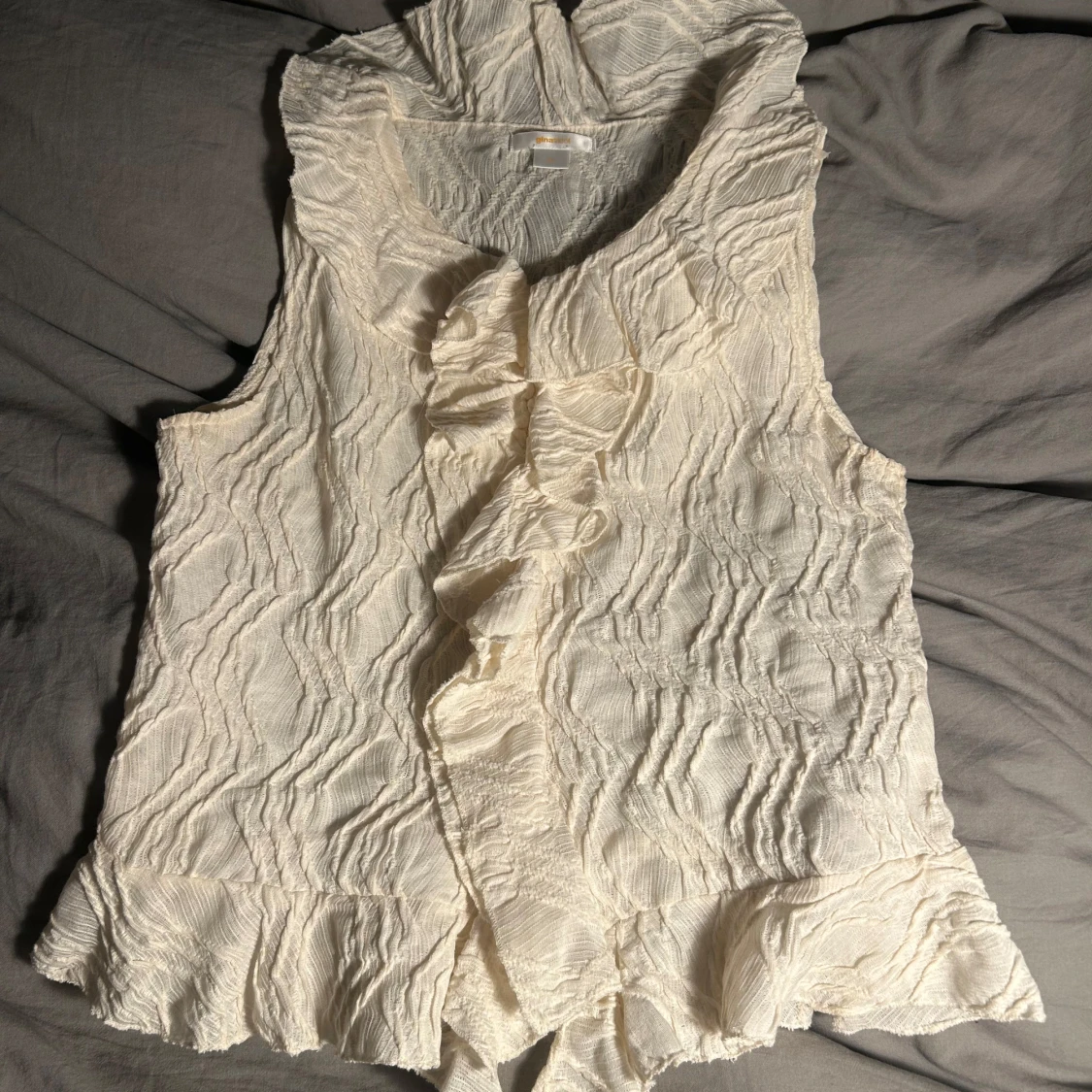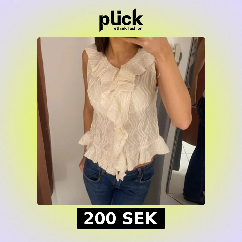 Vit/cremefärgad volang blus från Gina Tricot! I storlek 170 och passar mig som brukar ha S men skulle även passa en XS. Bara använd ett par fåtal gånger och säljer då den ej kommer till användning! Pris kan diskuteras