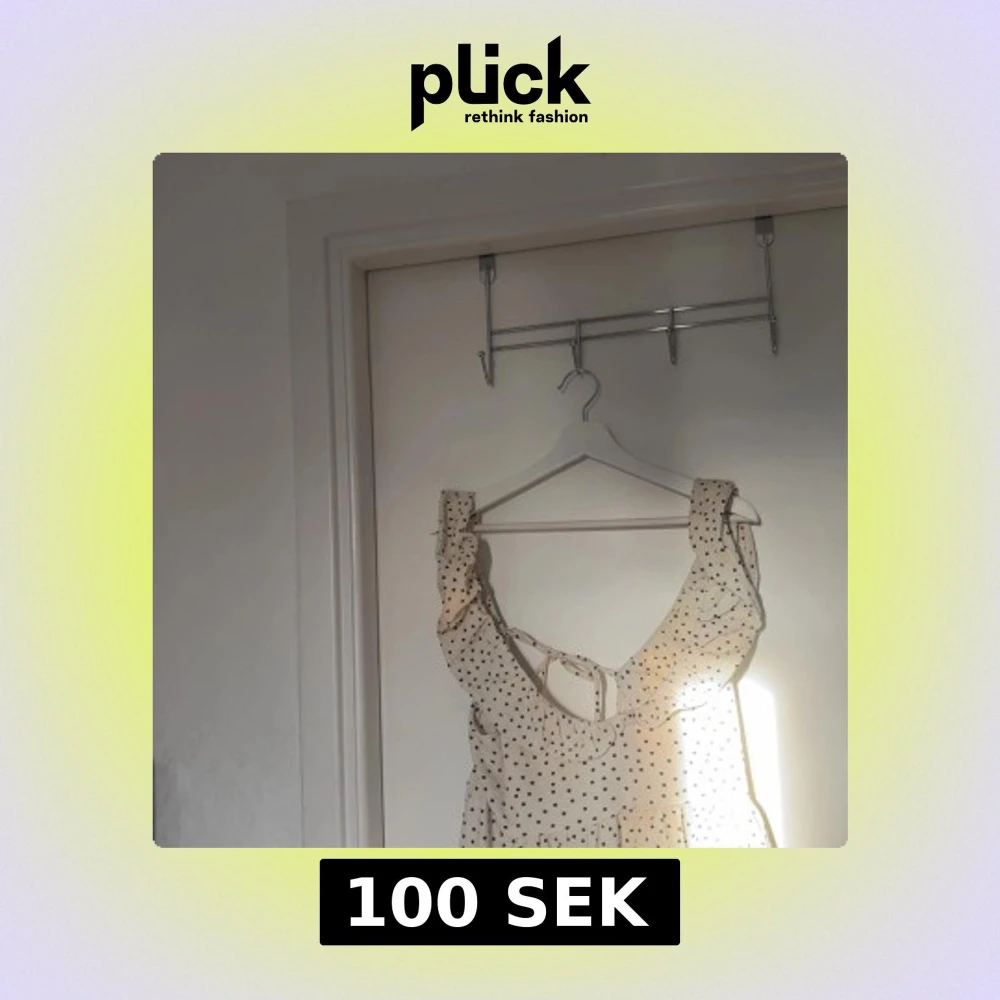 Supersöt ljus topp med svarta prickar och volangdetaljer vid axlarna. Som har en öppen rygg med knytband och är ärmlös, perfekt för varma dagar. Den har en luftig passform och ger en romantisk vibe.