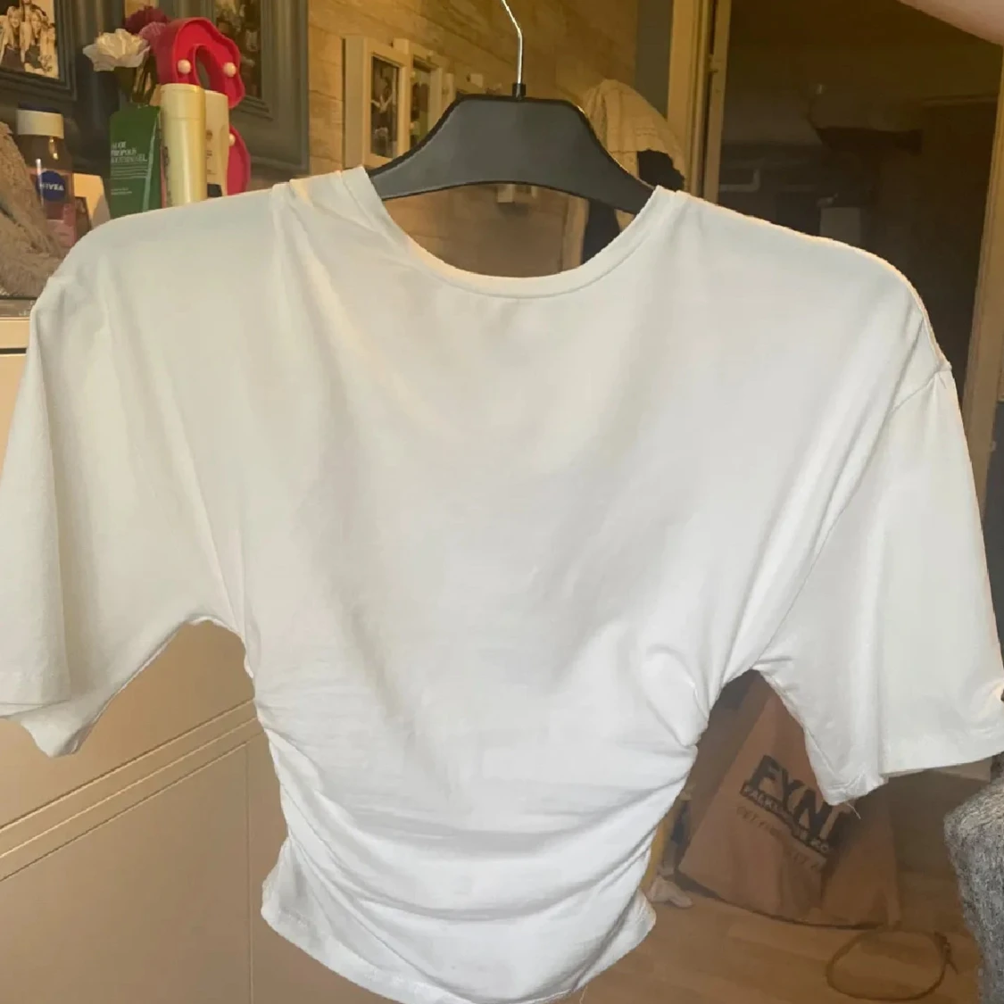 Säljer en helt oanvänd topp från Gina tricot i färgen vit. Storlek XXS.