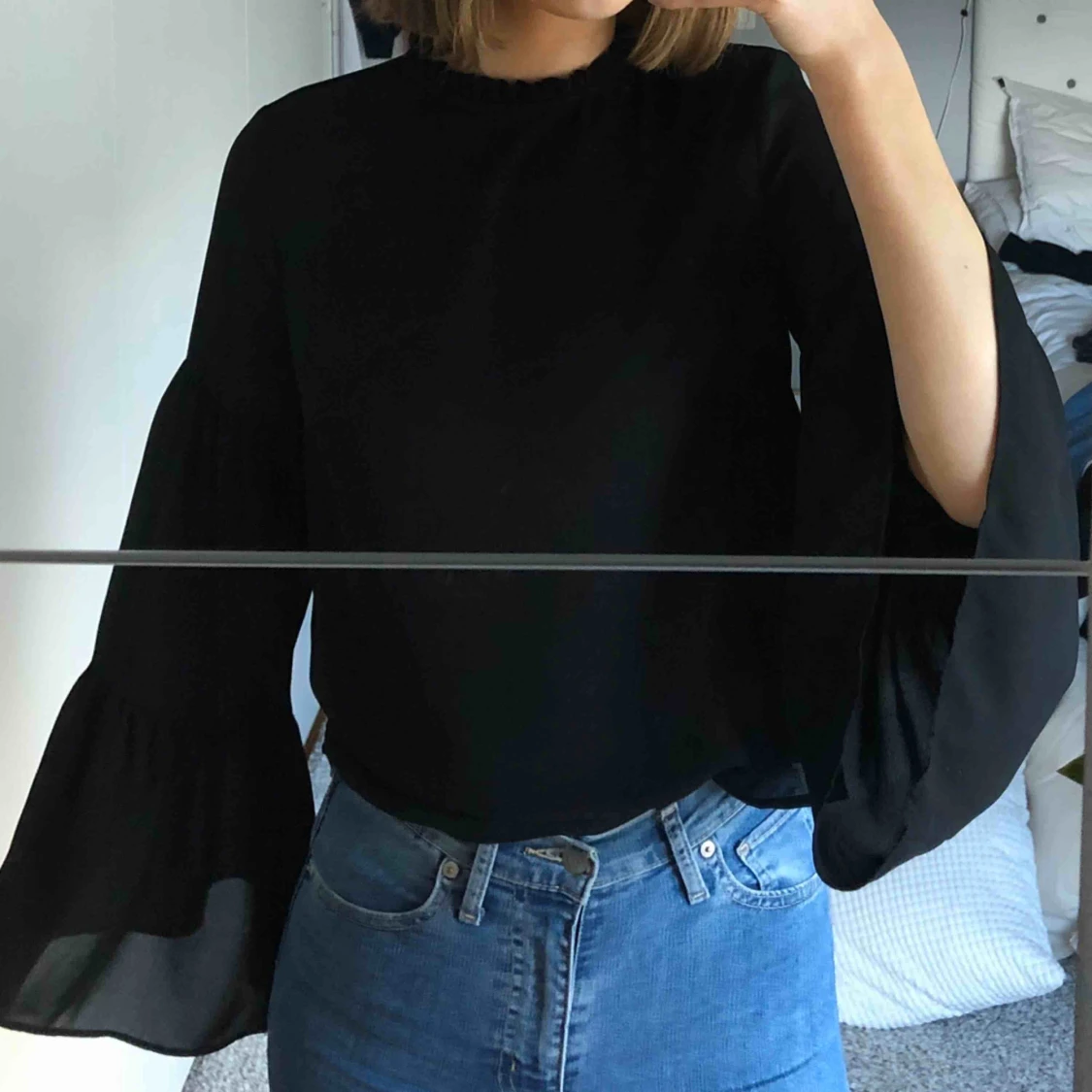 Söt blus från Ginatricot. Detaljer runt halsringningen och på ärmarna. Aldrig använd bara testad. Står stolek 34 men passar mig som är stolek 36 på toppar. Köparen står för frakten 🌸