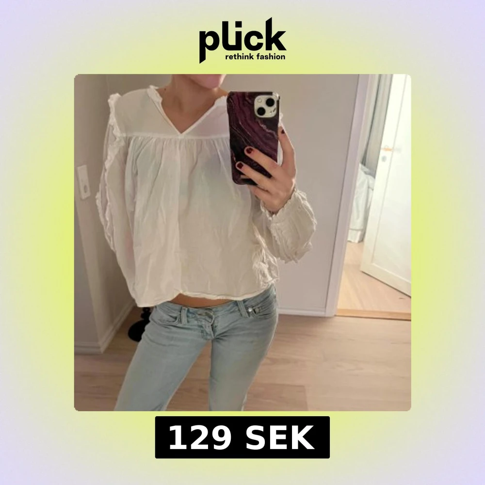 Vit blus med volangdetaljer