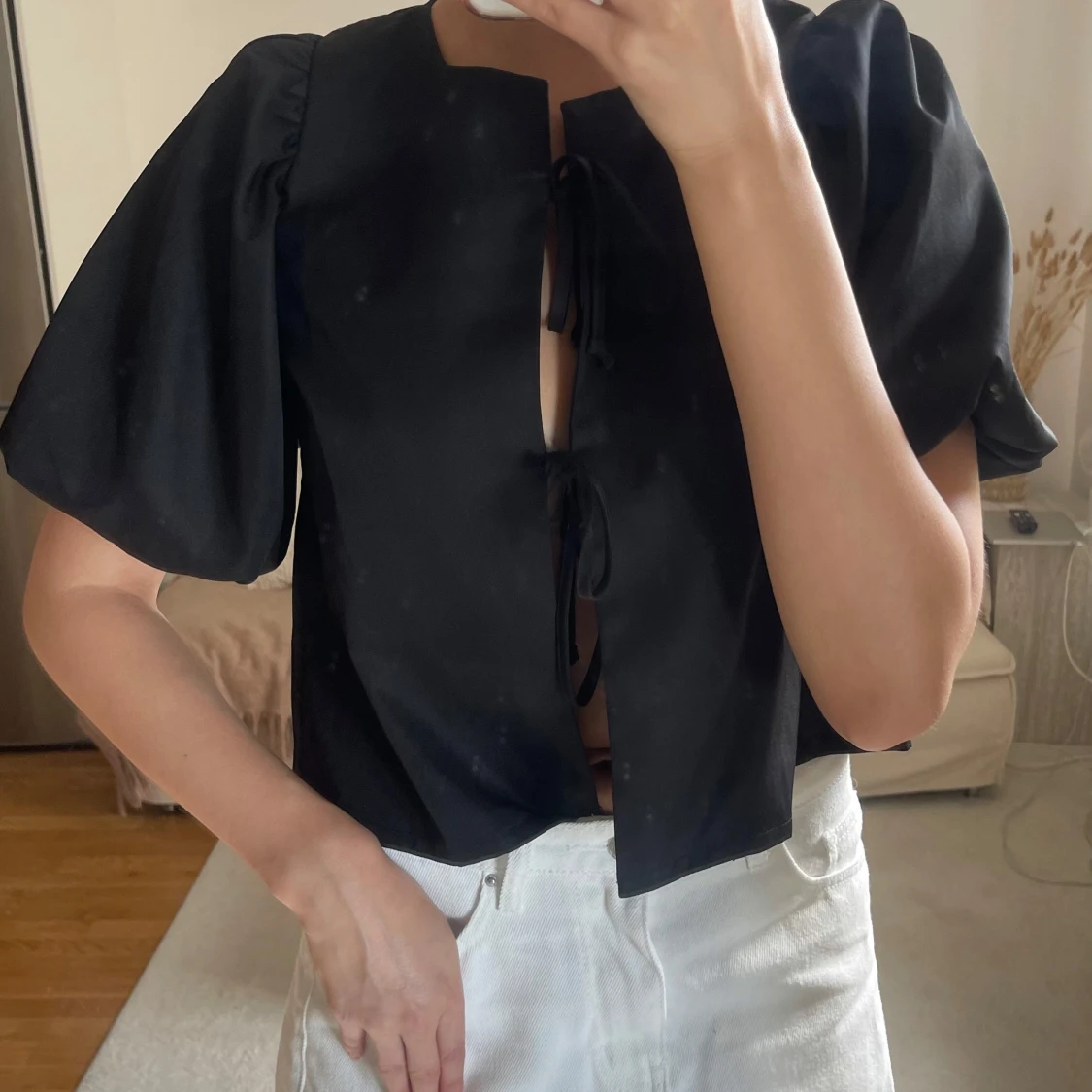 Super fin knyt blus från Ginatricot med puff ärmar, knappt använd där av säljs den! Inga defekter, storlek xs
