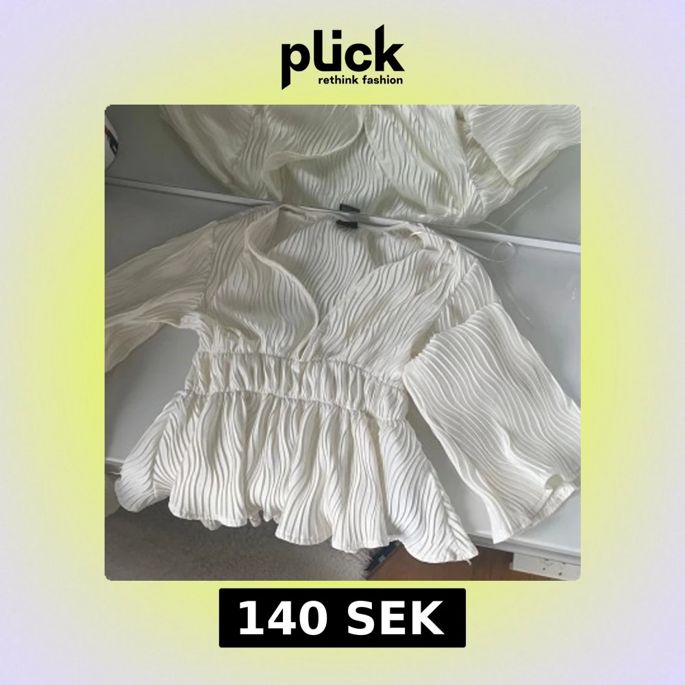 Säljer en elegant vit blus från Gina Tricot i storlek XS. Blusen har en v-ringad design med långa ärmar och ett fint plisserat mönster. Perfekt för en stilren look.💓