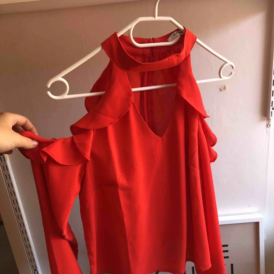 Så härlig blus i en jättefin röd färg! Knappt använd. Står storlek 8 men jag skulle säga att det är en S❣️