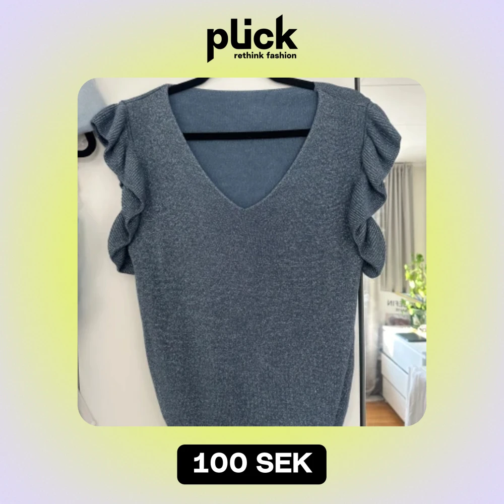 Jättesöt blåglittrig blus/topp med volangärm. Köpt för flera år sen i en liten butik så vet tyvärr ej märke