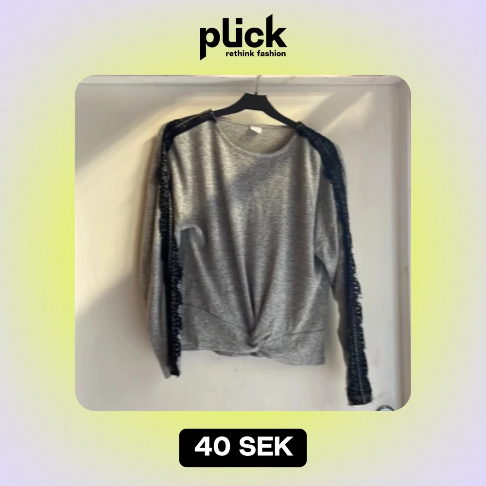 Grå långärmad tröja med spest på ärmarna och en knut på magen Storlek 146/152 Från Lindex