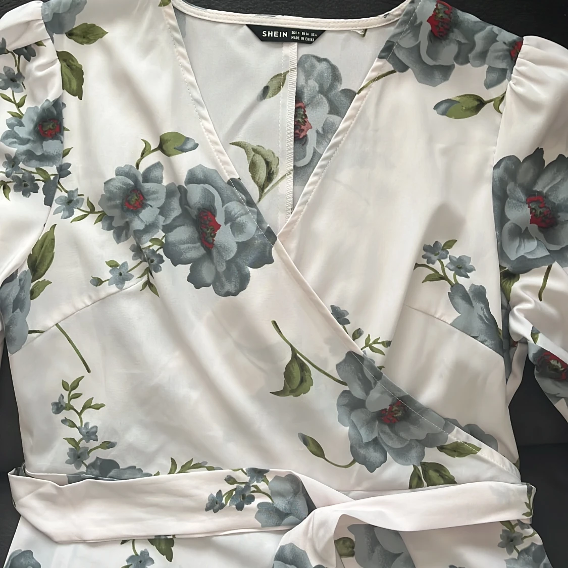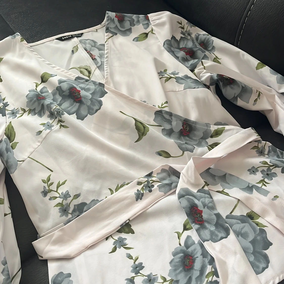 En fin somrig och blommig blus. Sitter jättefint med en dragkedja på höger sida, kan även knytas med ett tillhörande band rund midjan.
