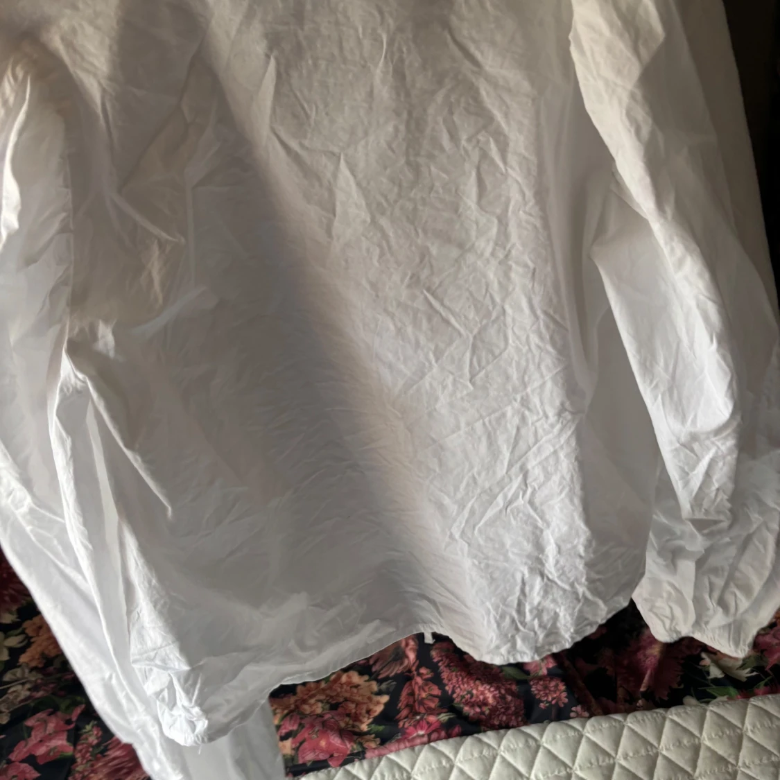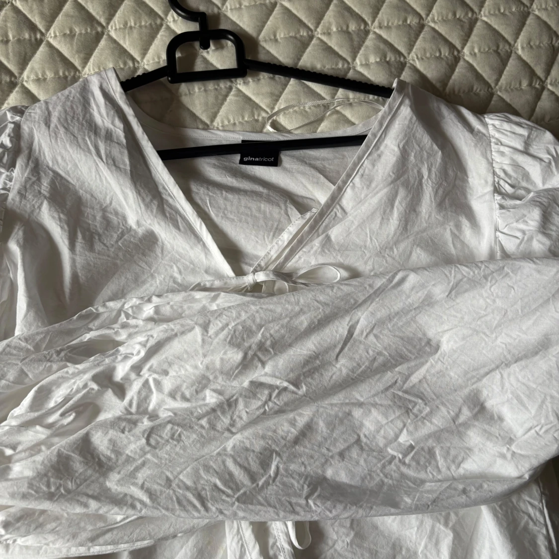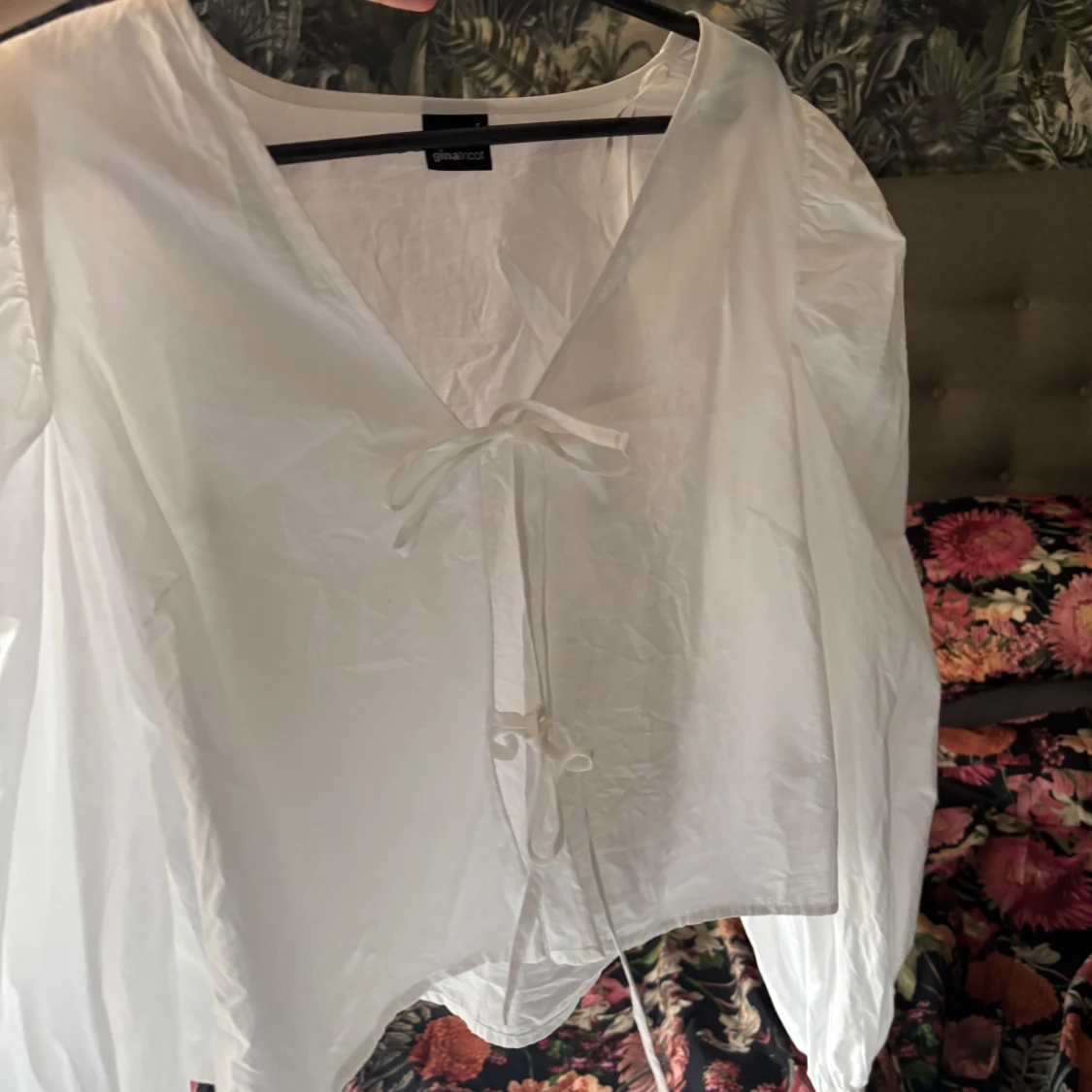 Vit blus använd 1 gång. Den har inga deffekter fläckar osv. Köpte för 250 o har även lagt ut den på Vinted! Obs första bilden är inte min men samma blus