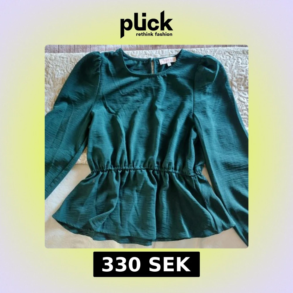 Säljer en grön blus från ONLY med långa armar och rund halsringning. Blusen har markerad midja. Inte använder nån gång och är I helt nytt skick.