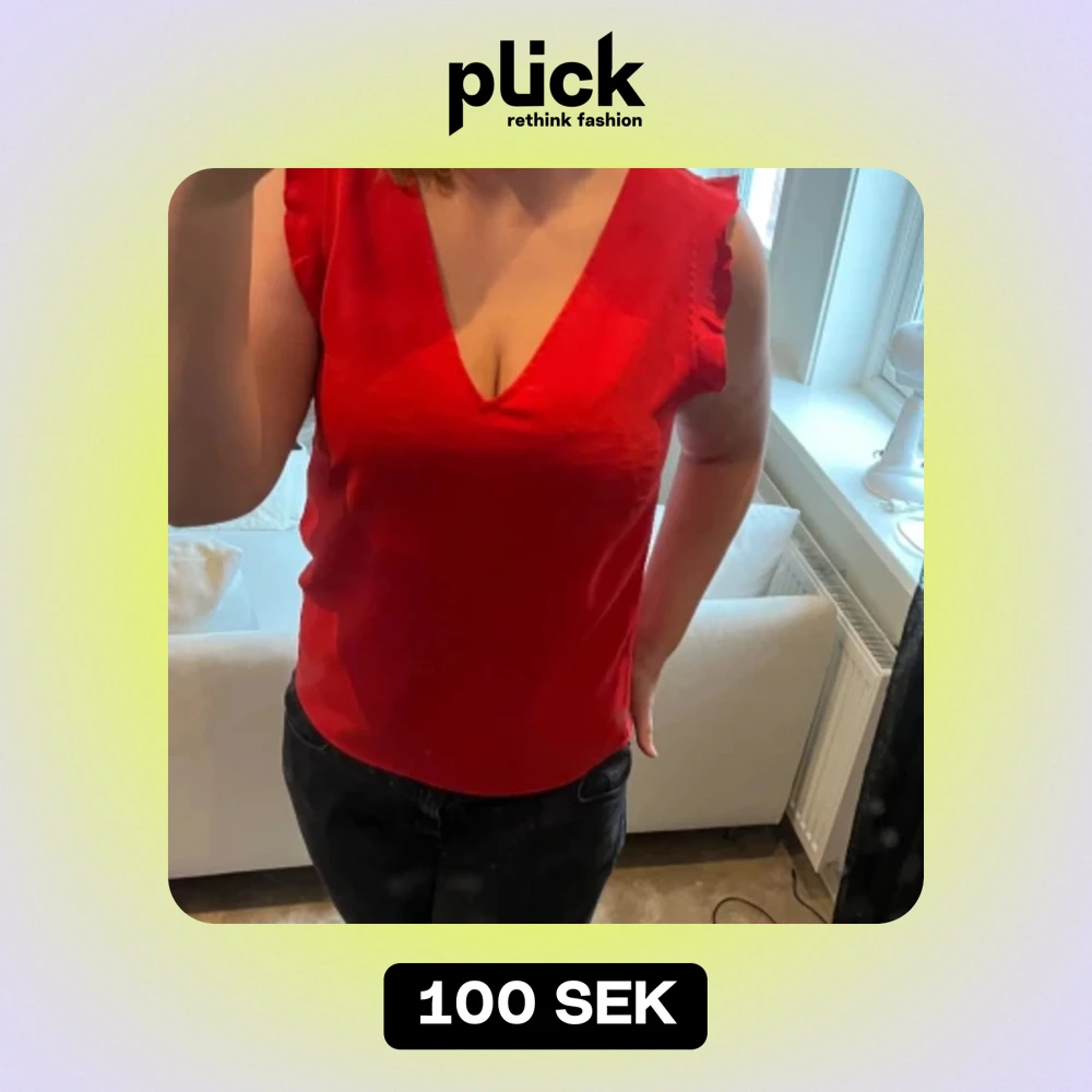 Röd kortärmad blus med volanger. Säljer då den är lite tajt på mig men är i toppen skick och super fin.