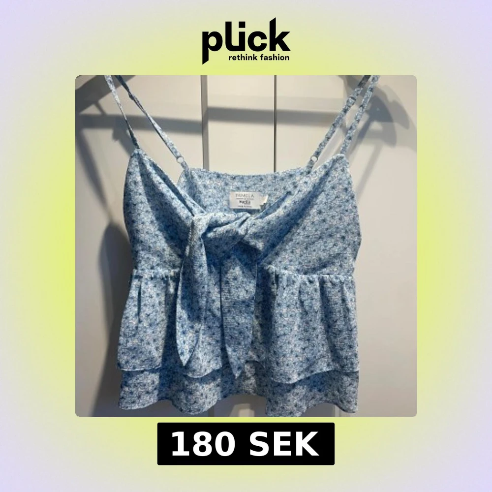En JÄTTEFIN blå blommig topp med knyte, man knyter själv och kan även installera bandens längd💙Den är också urringad. SUPER PASSANDE för sommaren också!!☀️Passar för storlekarna S/XS