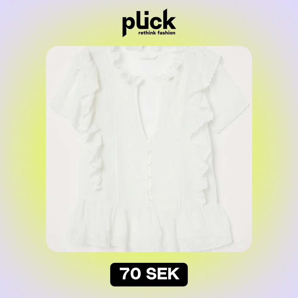 Jättefin vit blus från H&M, köpt på vinted för 150kr, säljer för 70kr + frakt 💕