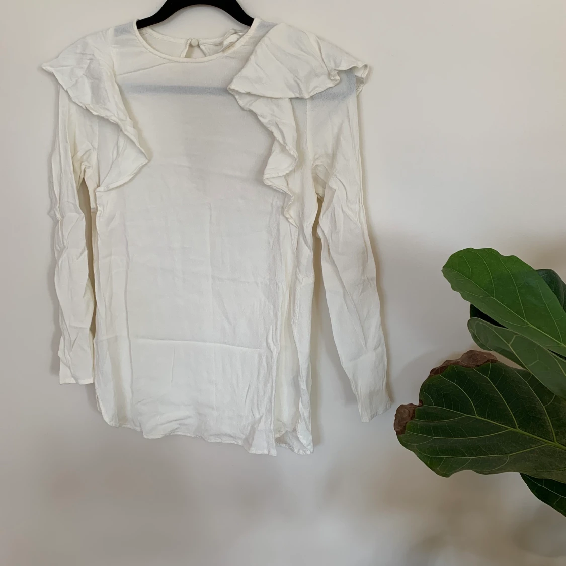 Fin vit blus med volanger storlek 36