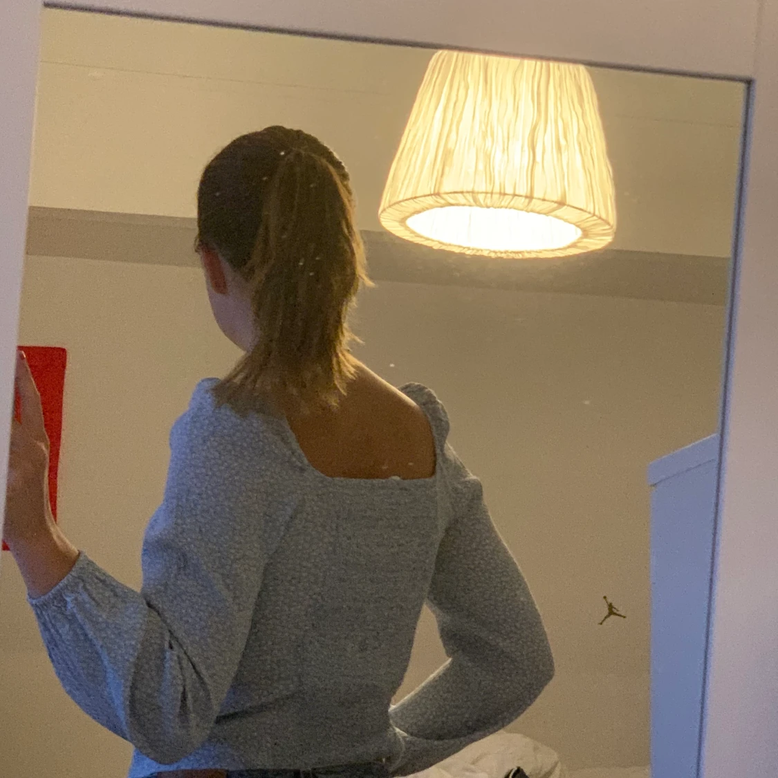 Blå blus med puff ärmar. Den är från hm och bara använd fåtal gånger. Storlek 34. Men passar även 36 men lite tajtare på 36or, då den har typ strechigt material på ryggen.🥰 42kr frakt