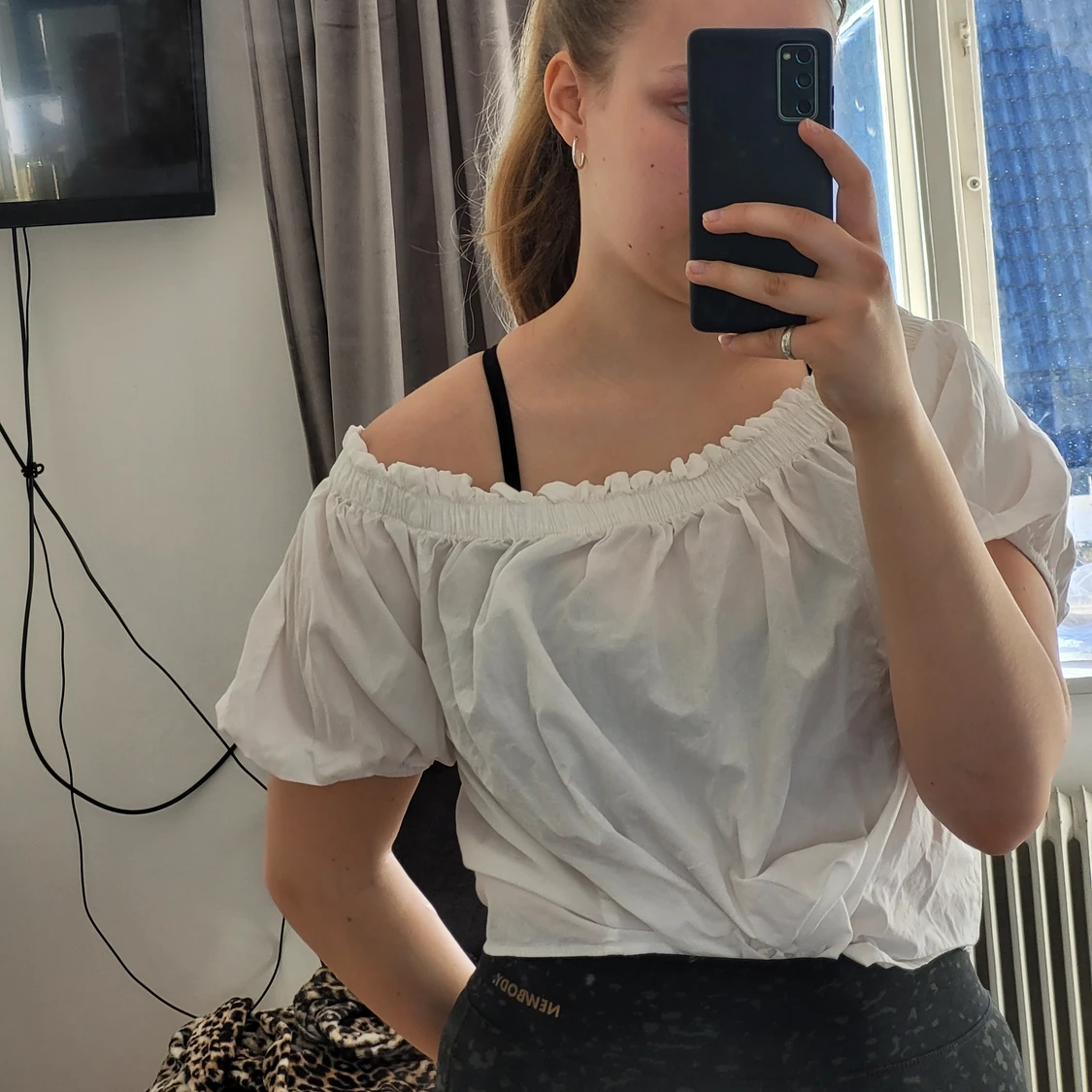 En offshoulder tröja från H&M med puffärmar, aldrig använd.