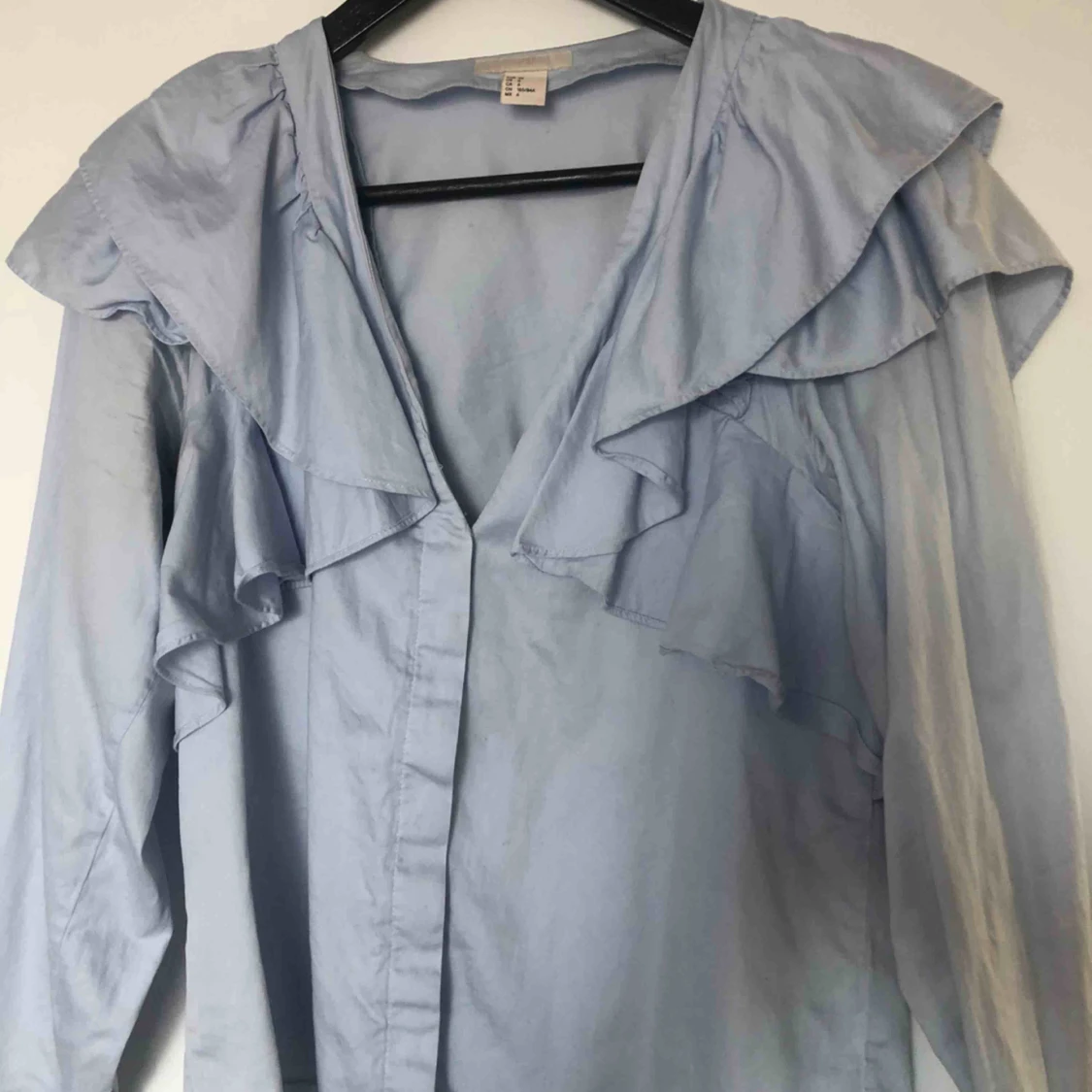 Duvblå blus från hm trend i storlek 36 som passar en 36- 40. Lite defekter under höger arm som knappt är synliga. Fraktats gärna!